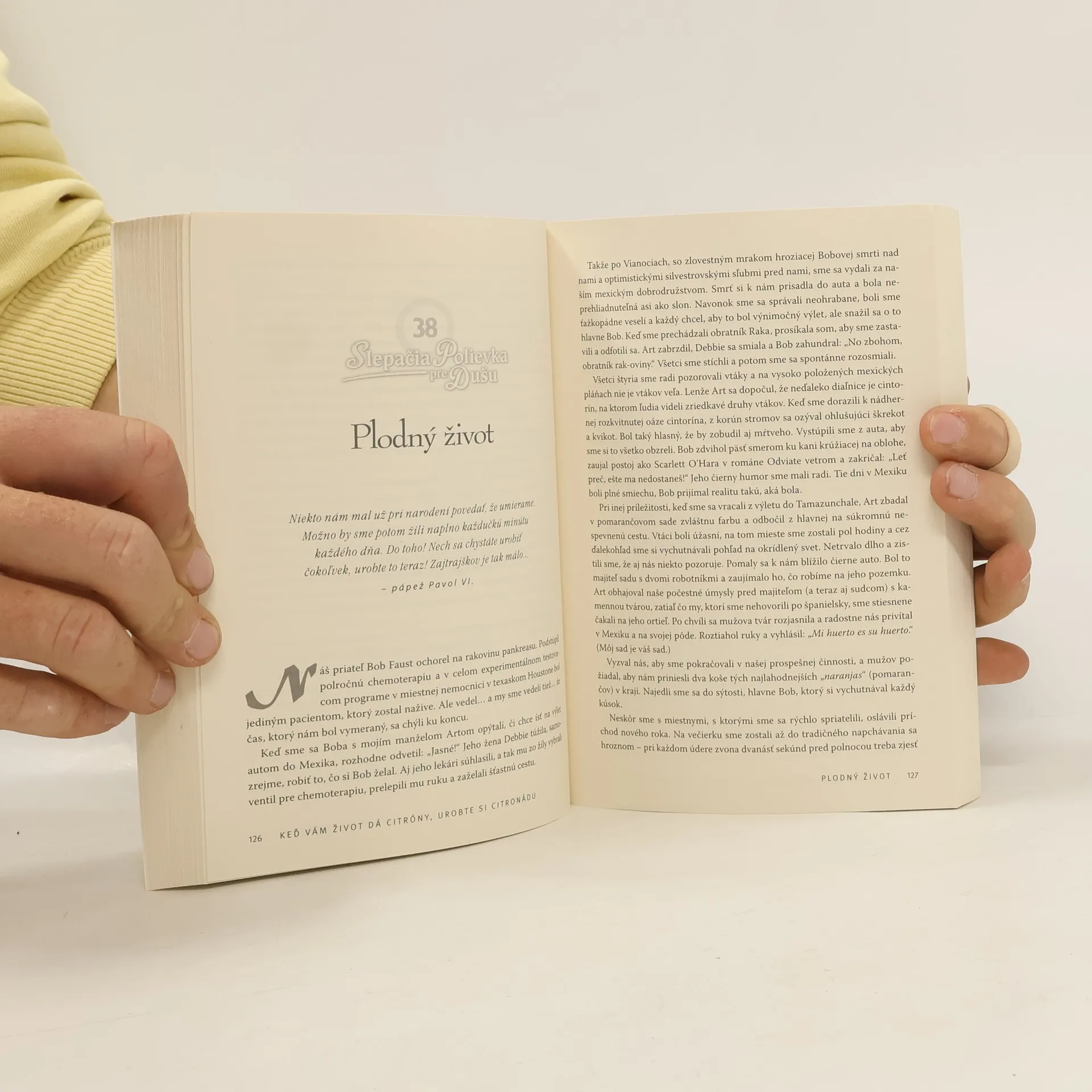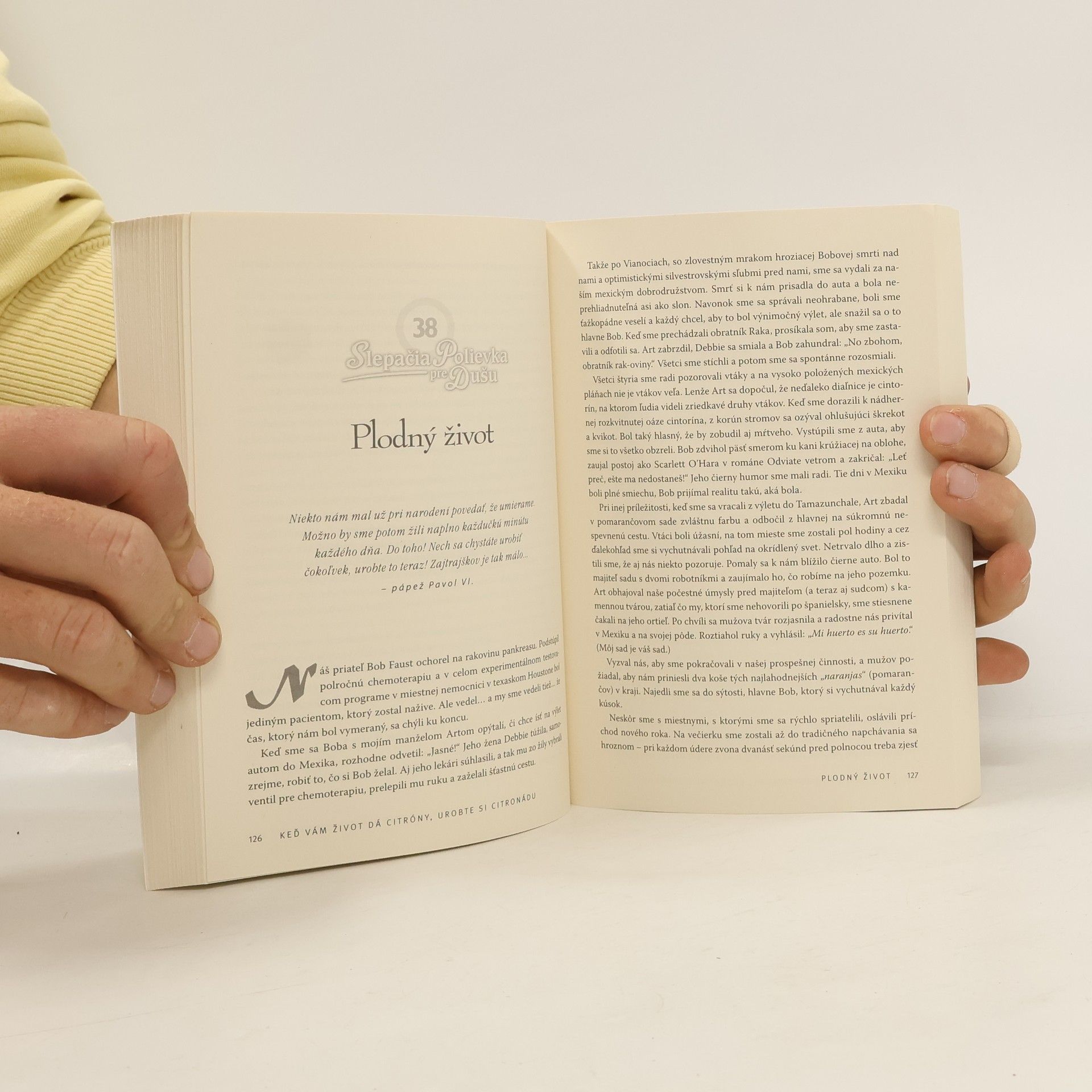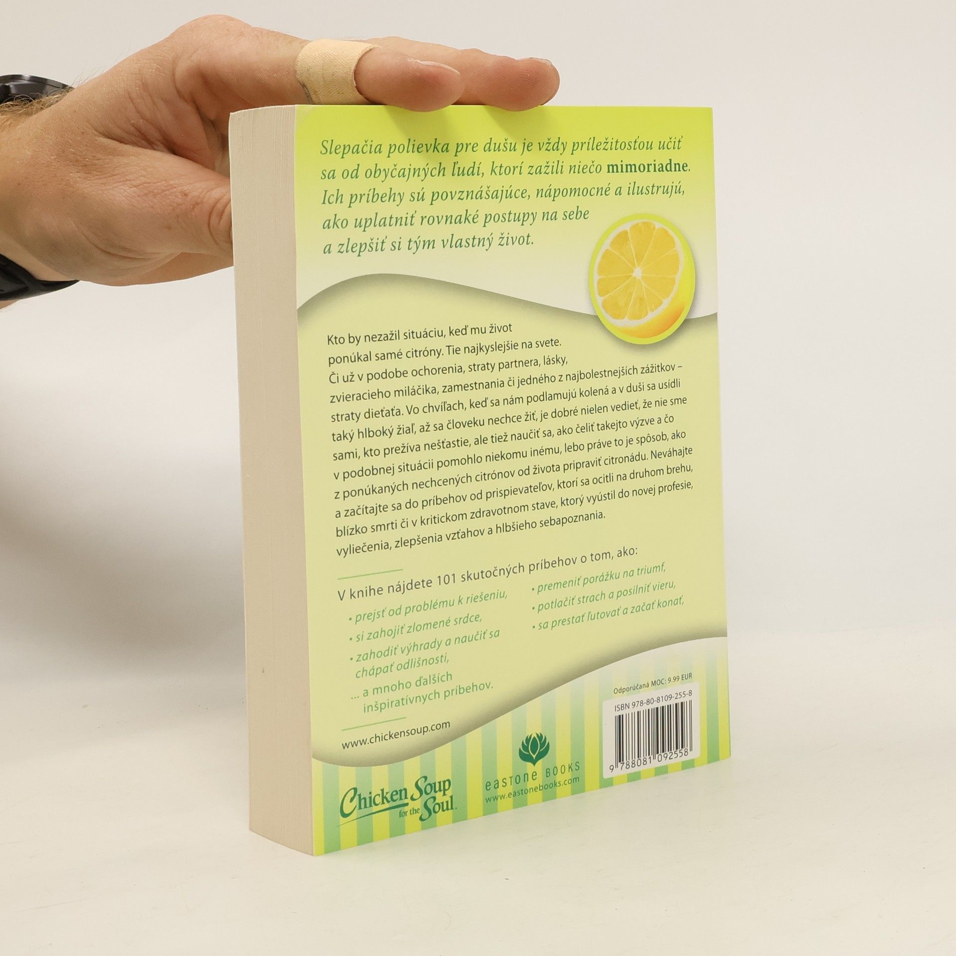 Slepačia polievka pre dušu je vždy príležitosťou učiť sa od obyčajných ľudí, ktorí zažili niečo mimoriadne. Ich príbehy sú povznášajúce, nápomocné a ilustrujú, ako uplatniť rovnaké postupy a zlepšiť si tým vlastný život. Kto by nezažil situáciu, keď mu život ponúkal samé citróny. Tie najkyslejšie na svete. Či už v podobe ochorenia, straty partnera, lásky, zvieracieho miláčika, zamestnania či jedného z najbolestnejších zážitkov – straty dieťaťa. Vo chvíľach, keď sa nám podlamujú kolená a v duši sa usídli taký hlboký žiaľ, až sa človeku nechce žiť, je dobré nielen vedieť, že nie sme sami, kto prežíva nešťastie, ale tiež naučiť sa, ako čeliť takejto výzve a čo v podobnej situácii pomohlo niekomu inému, lebo práve to je spôsob, ako z ponúkaných nechcených citrónov od života pripraviť citronádu. Neváhajte a začítajte sa do príbehov od prispievateľov, ktorí sa ocitli na druhom brehu, blízko smrti či v kritickom zdravotnom stave, ktorý vyústil do novej profesie, vyliečenia, zlepšenia vzťahov a hlbšieho sebapoznania. Príbehy na témy: 1. Z obete víťazom, 2. Od boja o život ku vzťahom, 3. Od nečinnosti k aktivite, 4. Od vzbury k prijatiu, 5. Od problému k riešeniu, 6. Od porážky k triumfu, 7. Od zlomeného srdca k jeho zahojeniu, 8. Od ľútosti k šťastiu, 9. Od výhrad k porozumeniu, 10. Od strachu k viere.
