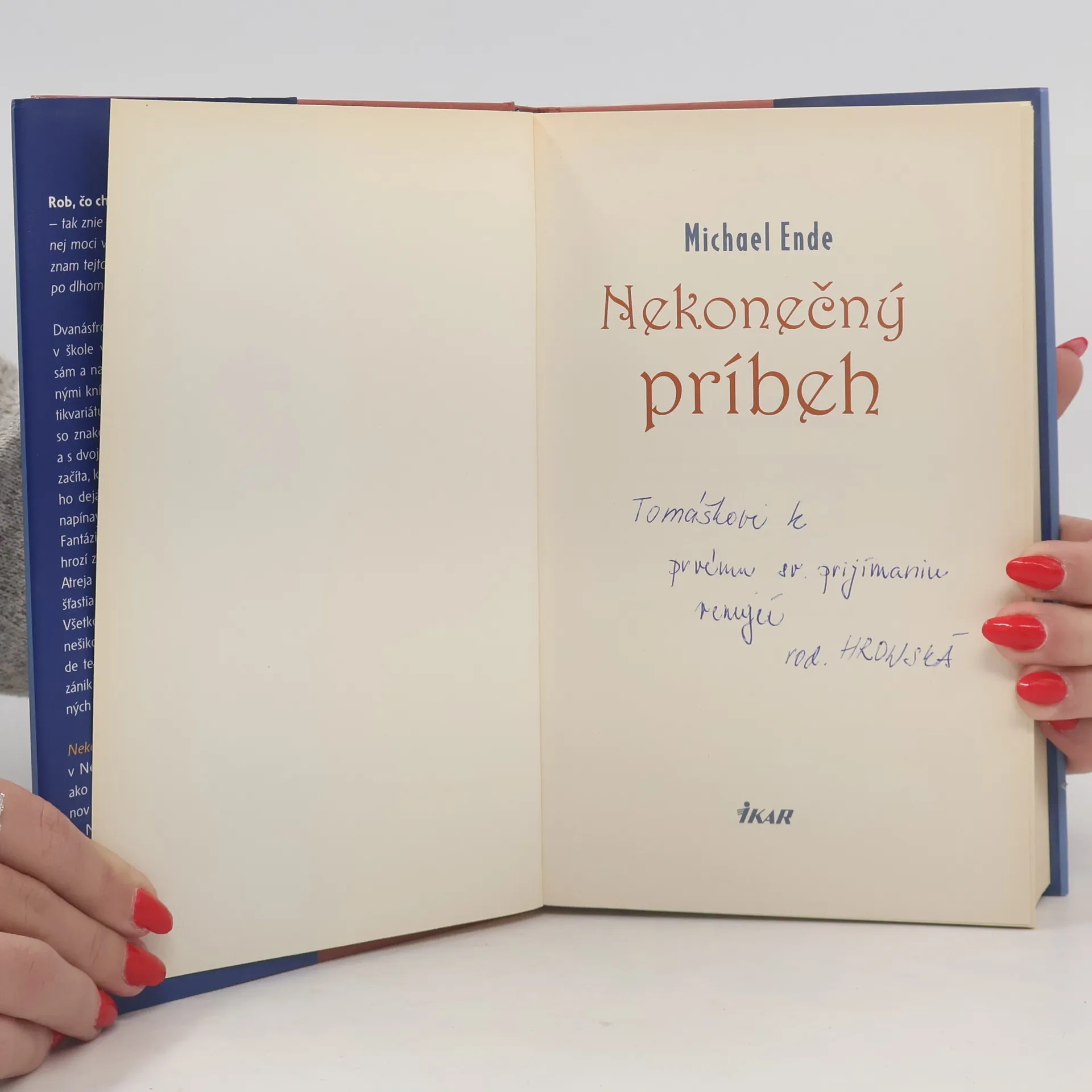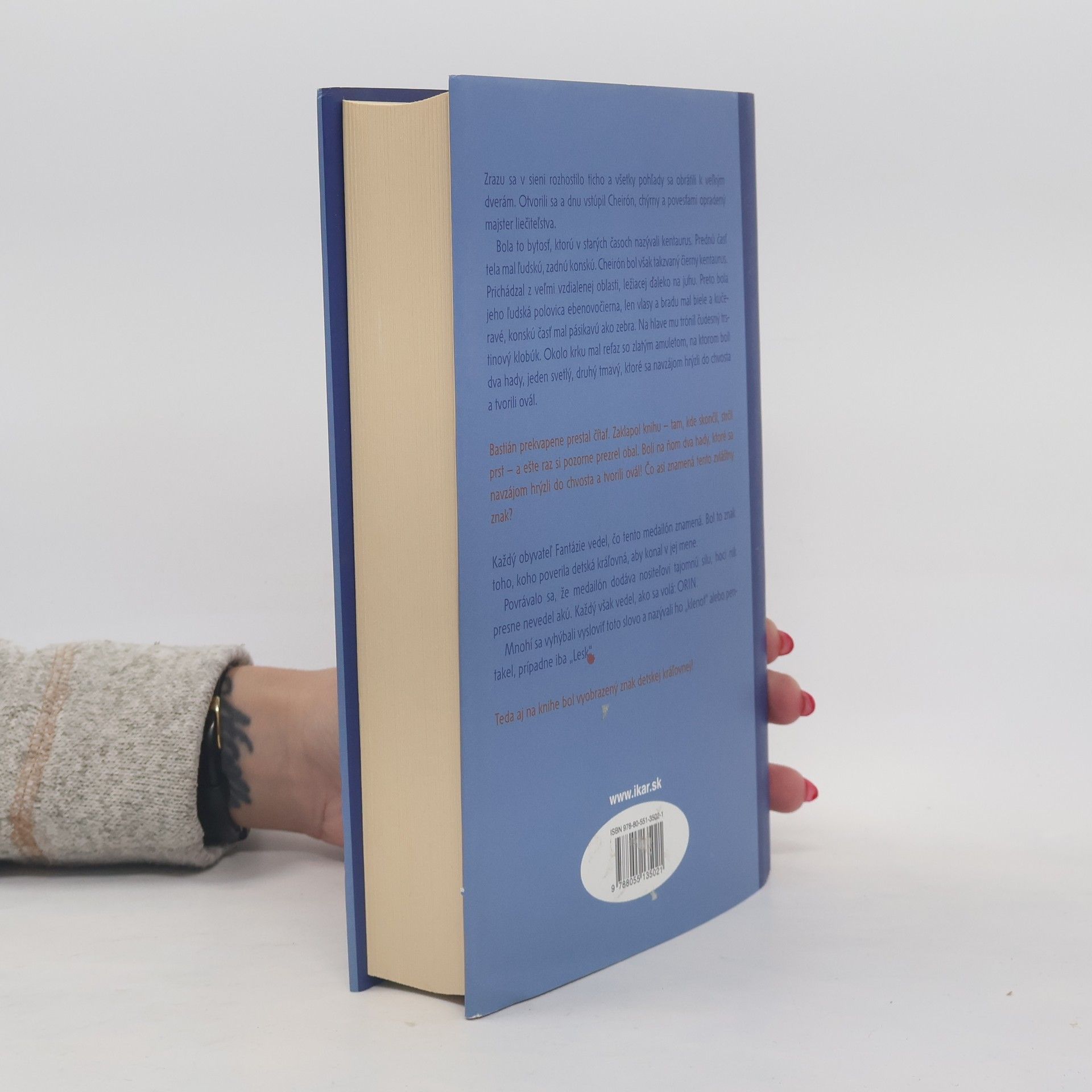 Dvanásťročný Bastián Baltazár Bux nie je v škole veľmi obľúbený, preto je často sám a najlepšie sa cíti medzi policami plnými kníh. Jedného dňa neodolá a z antikvariátu ukradne tajuplnú hrubú knihu so znakom dvojhlavého hada na obálke a s dvojfarebným písmom. Keď sa do nej začíta, kniha ho nečakane vtiahne do svojho deja a chlapec sa tak stane súčasťou napínavého príbehu. Dozvie sa, že krajine Fantázia a jej vládkyni, detskej kráľovnej, hrozí zánik. Kráľovná si na pomoc zavolá Atreja a poverí ho, aby sa spolu s drakom šťastia Falkom pokúsil zachrániť krajinu. Všetko však nasvedčuje tomu, že práve nešikovnému Bastiánovi, ktorý je v triede terčom posmechu, sa podarí odvrátiť zánik Fantázie a zachrániť jej podivuhodných obyvateľov.
