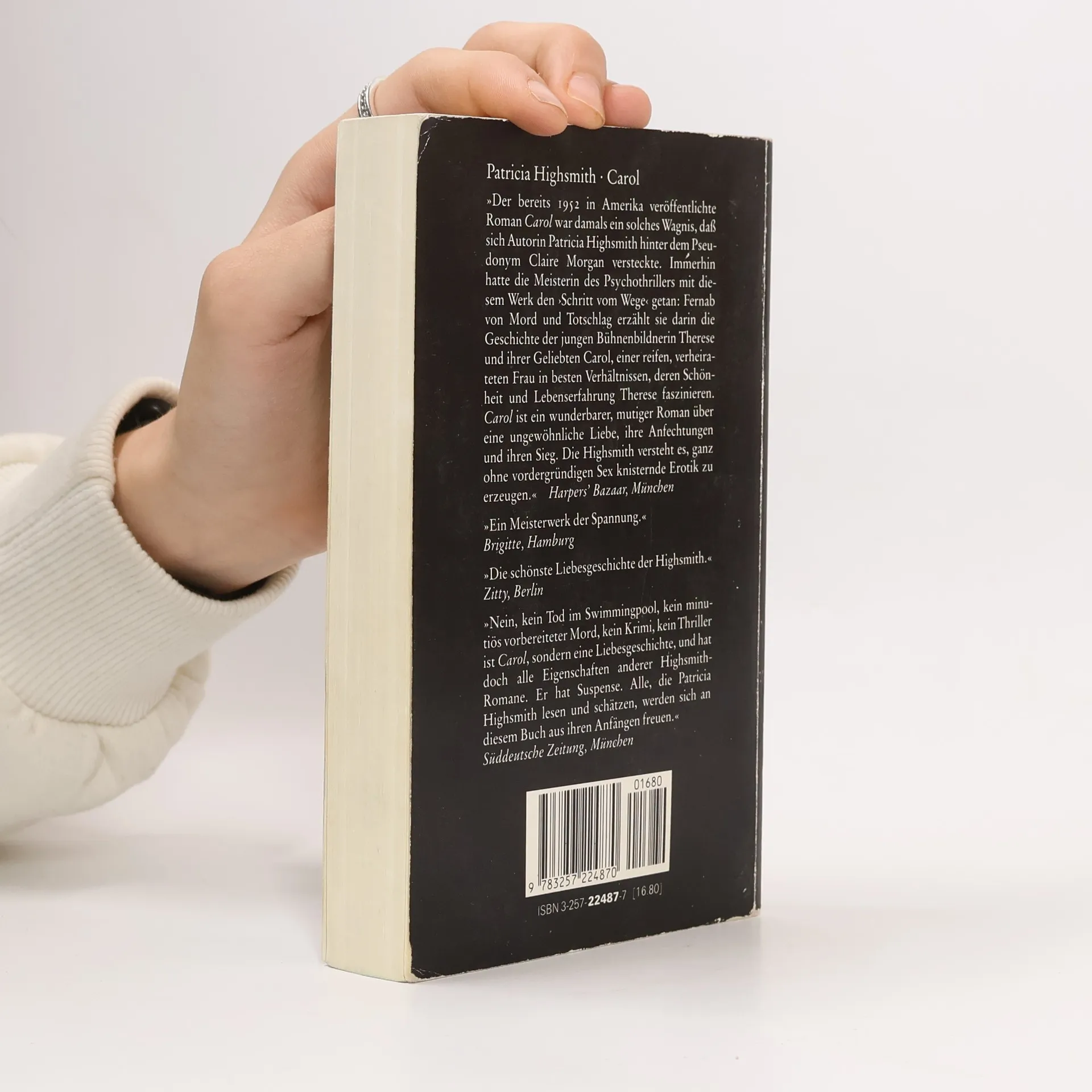 Eine ganz normale Geschichte, nur dass 1952, als der Kultroman einer lesbischen Liebe in McCarthys Amerika erstmals unter Pseudonym erschien, dort alles als verdächtig galt, was etwas anders war: Zwei Frauen lernen sich kennen und beschließen, eine lange Reise miteinander zu machen. Ein Privatdetektiv folgt ihnen, um Beweise für ihre erotische Beziehung zu sammeln. Die eine Frau reist ab, die andere bleibt grübelnd zurück. Irgendwann reist auch diese wieder heim. Dazwischen haben die beiden Tage und Kilometer hinter sich gebracht, um sich kennen- und liebenzulernen. Eine knisternde Amour fou. Ein moralisches Dilemma für die eine, das ihr, wie immer sie sich entscheidet, einen hohen Preis abfordert. Und eine Road-novel à la ›Thelma und Louise‹, mit dem Unterschied, dass Carol und Therese kein Verbrechen begangen haben außer dem, sich zu lieben. ›Salz und sein Preis‹ ist Patricia Highsmiths einziger Roman, der von erfüllter Liebe handelt, die als Glück empfunden wird und nicht als böser Wahn. Nie wieder schreibt die Autorin, die den Roman unter dem Eindruck einer persönlichen Begegnung begann, so sinnlich, so poetisch, so erotisch.