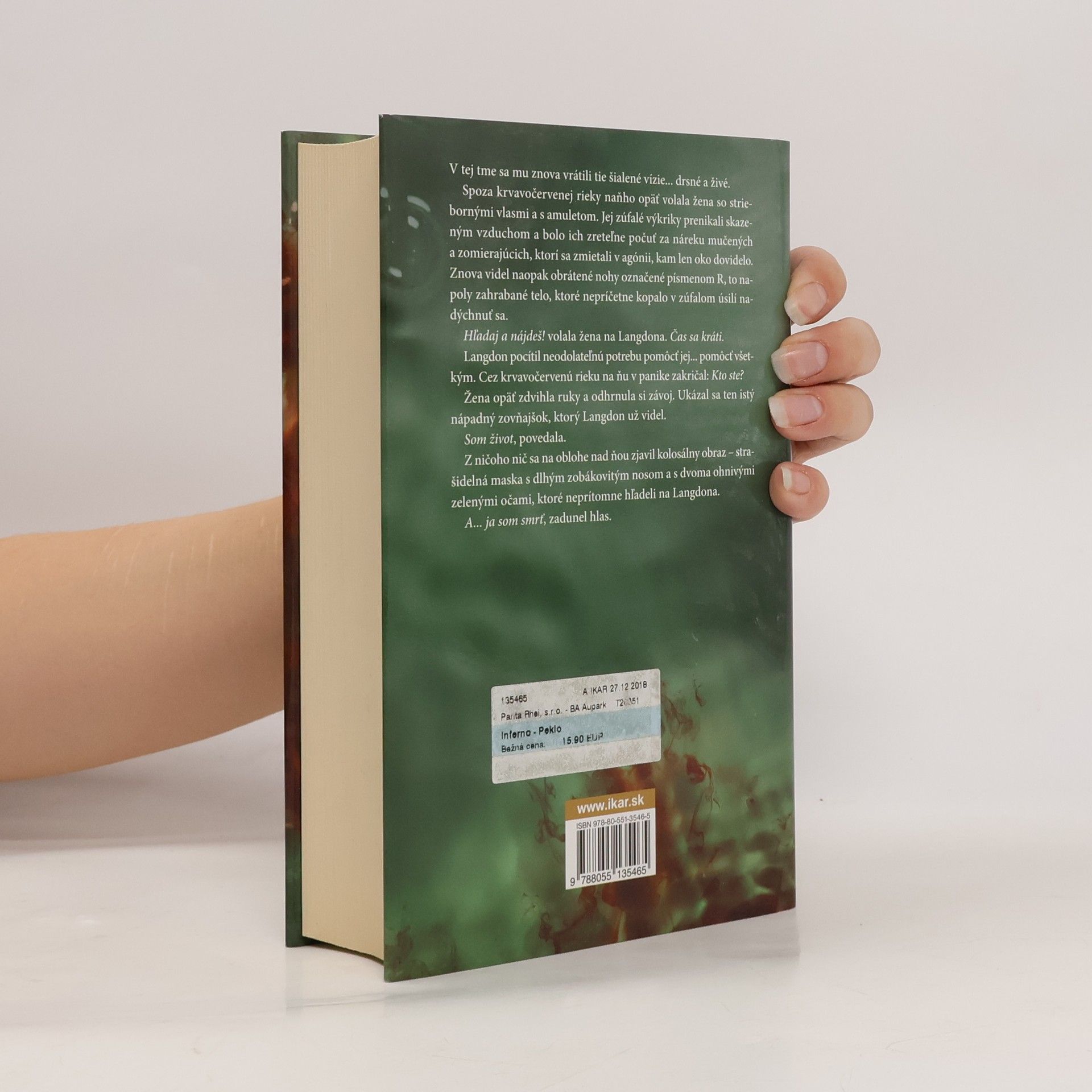 Vzrušujúci život Roberta Langdona pokračuje! Známy a uznávaný symbolista sa tentoraz ocitá v srdci Talianska, kde sa rozpúta napínavé dobrodružstvo okolo jedného z najtajomnejších literárnych diel v histórii. Langdon sa musí postaviť tvárou v tvár súperovi, ktorý ho zavedie do sveta klasického umenia, tajných chodieb a futuristických zbraní. Kľúč na nezodpovedané otázky je skrytý medzi riadkami Danteho Pekla a symbolista sa opäť vrhá do boja s časom, aby odvrátil skazu sveta...
