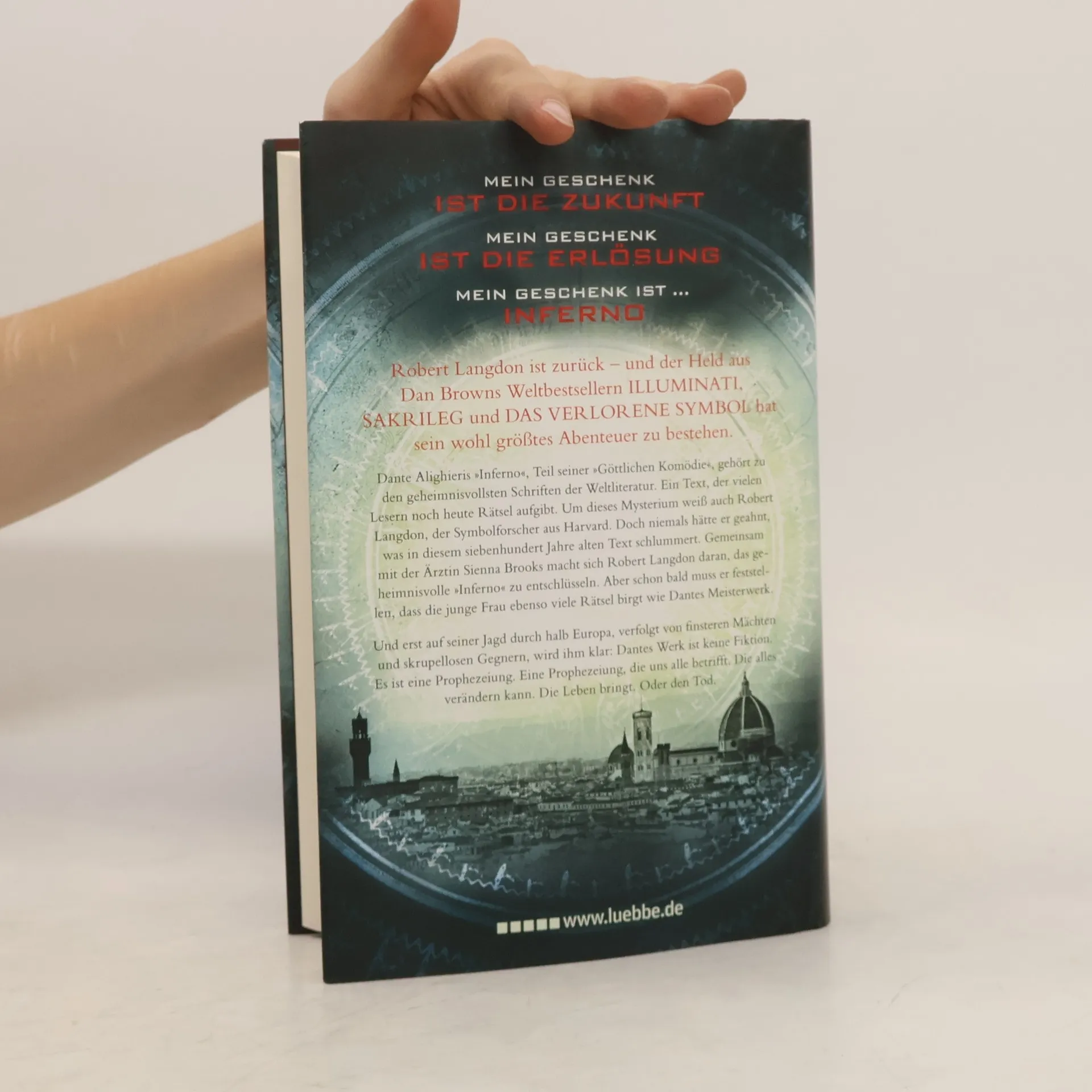 Dante Alighieris "Inferno", Teil seiner "Göttlichen Komödie", gehört zu den geheimnisvollsten Schriften der Weltliteratur. Ein Text, der vielen Lesern noch heute Rätsel aufgibt. Um dieses Mysterium weiss auch Robert Langdon, der Symbolforscher aus Harvard. Doch niemals hätte er geahnt, was in diesem siebenhundert Jahre alten Text schlummert. Gemeinsam mit der Ärztin Sienna Brooks macht sich Robert Langdon daran, das geheimnisvolle "Inferno" zu entschlüsseln. Aber schon bald muss er feststellen, dass die junge Frau ebenso viele Rätsel birgt wie Dantes Meisterwerk.