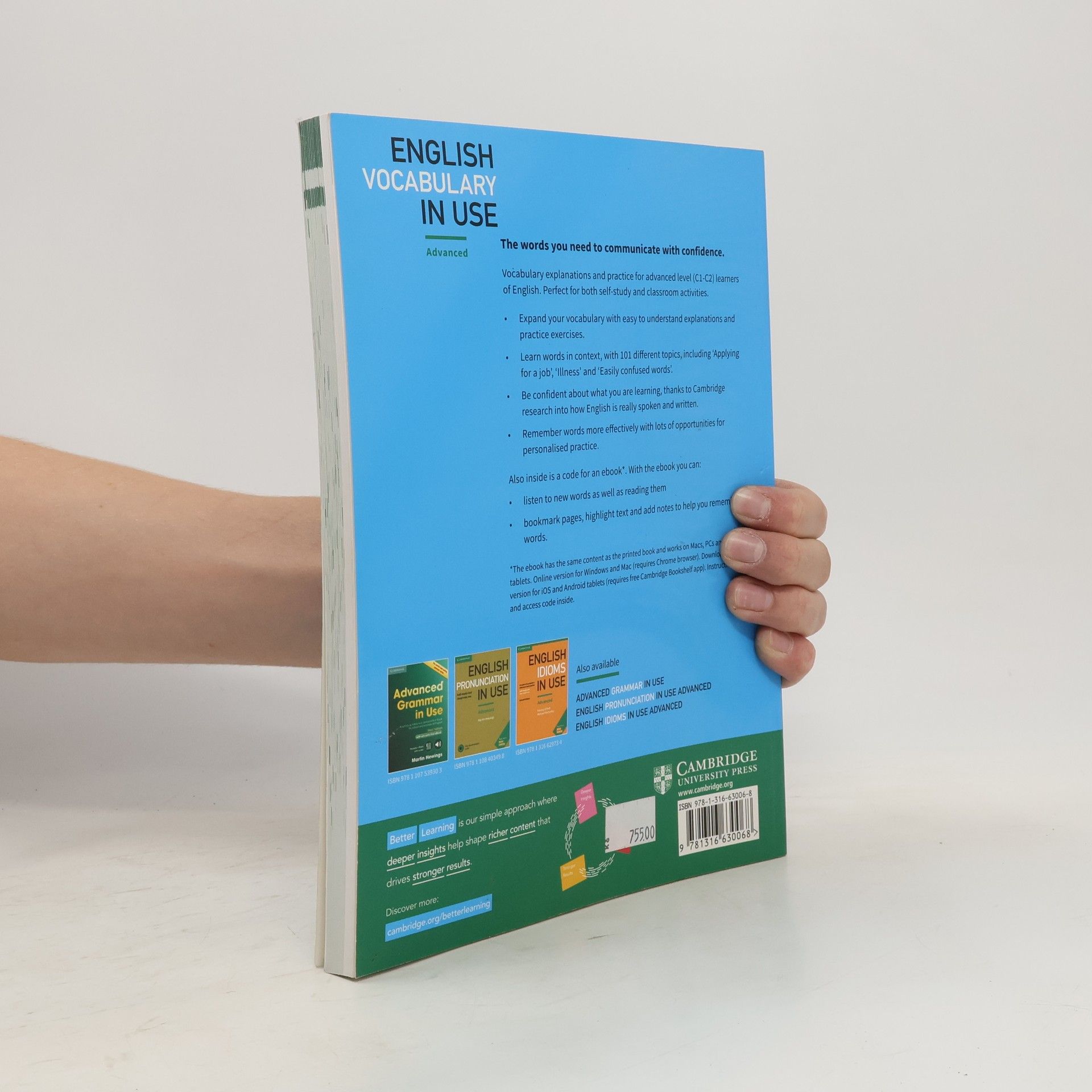 The words you need to communicate with confidence. Vocabulary explanations and practice for advanced level (C1 to C2) learners of English. Perfect for both self-study and classroom activities. Quickly expand your vocabulary with over 100 units of easy to understand explanations and practice exercises. Be confident about what you are learning, thanks to Cambridge research into how English is really spoken and written, and remember words more effectively with lots of opportunities for personalised practice.