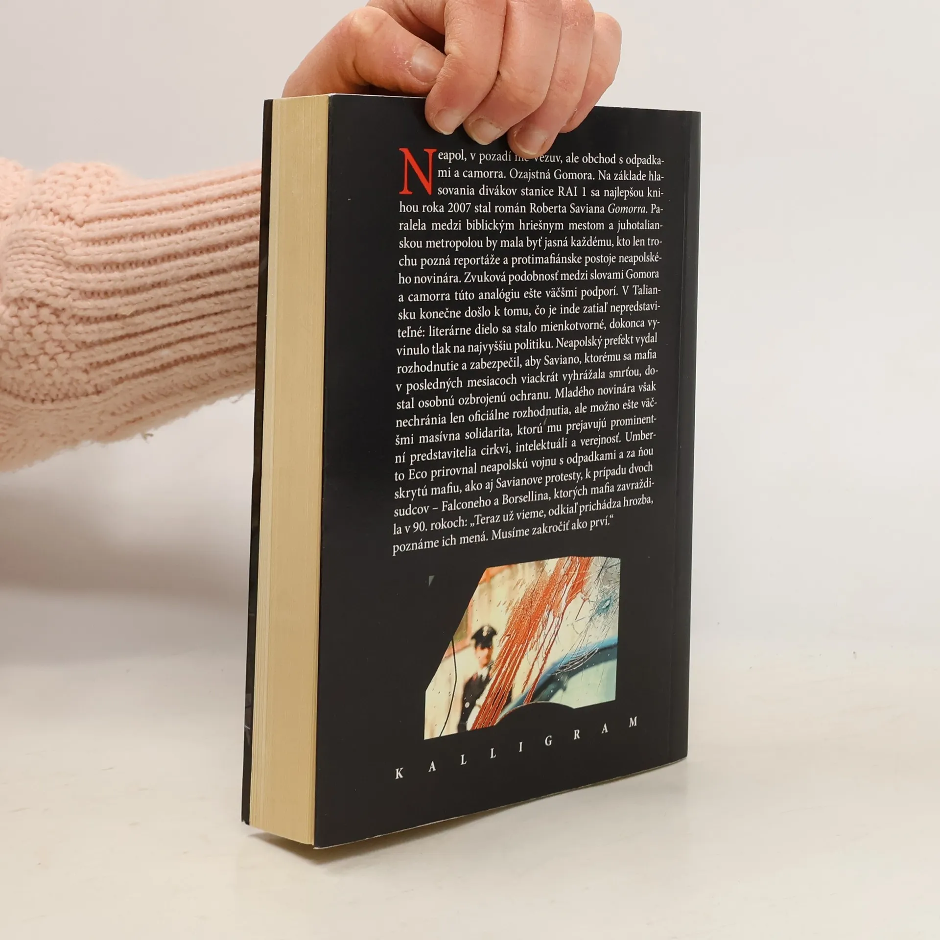 Neapolská mafia má prsty v medzinárodnom obchode s drogami, zarába ťažké peniaze na pašovaní jedovatého odpadu a na nelegálnej výrobe textilu, drží si monopol pri obchodovaní so stavebnými materiálmi a spolieha na vysoké kontakty v Nemecku, Škótsku alebo Číne. 29-ročný taliansky novinár Roberto Saviano riskoval vlastný život a pracoval pre mafiu, aby odhalil jej brutálne praktiky. Výsledkom jeho rešerší je absolútny bestseller – iba v Taliansku sa z knihy predalo 1,2 milióna výtlačkov a na základe hlasovania divákov stanice RAI 1 sa najlepšou knihou roka 2007 stal práve Savianov román-dokument. V Taliansku konečne došlo k tomu, čo je inde zatiaľ nepredstaviteľné: literárne dielo sa stalo mienkotvorné, dokonca vyvinulo tlak na najvyššiu politiku. Neapolský prefekt vydal rozhodnutie a zabezpečil, aby Saviano, ktorému sa mafia v posledných mesiacoch viackrát vyhrážala smrťou, dostal osobnú ozbrojenú ochranu. Mladého novinára však nechránia len oficiálne rozhodnutia, ale možno ešte väčšmi masívna solidarita, ktorú mu prejavujú prominentní predstavitelia cirkvi, intelektuáli a verejnosť. Na motívy Savianovej knihy bol natočený film Gomorra (2008), ktorý získal tento rok Veľkú cenu na festivale v Cannes a je nominovaný na Oscara v kategórii cudzojazyčných filmov.