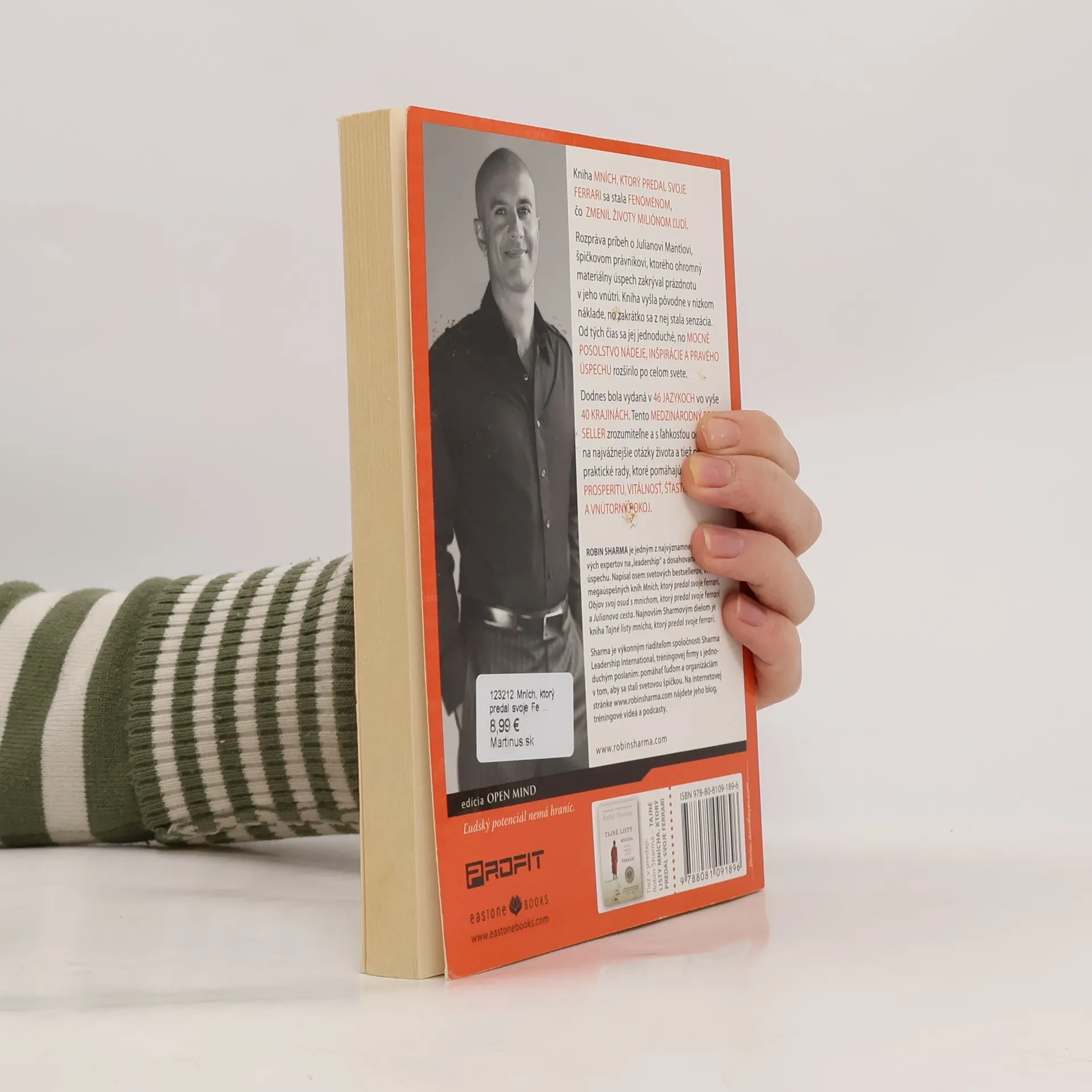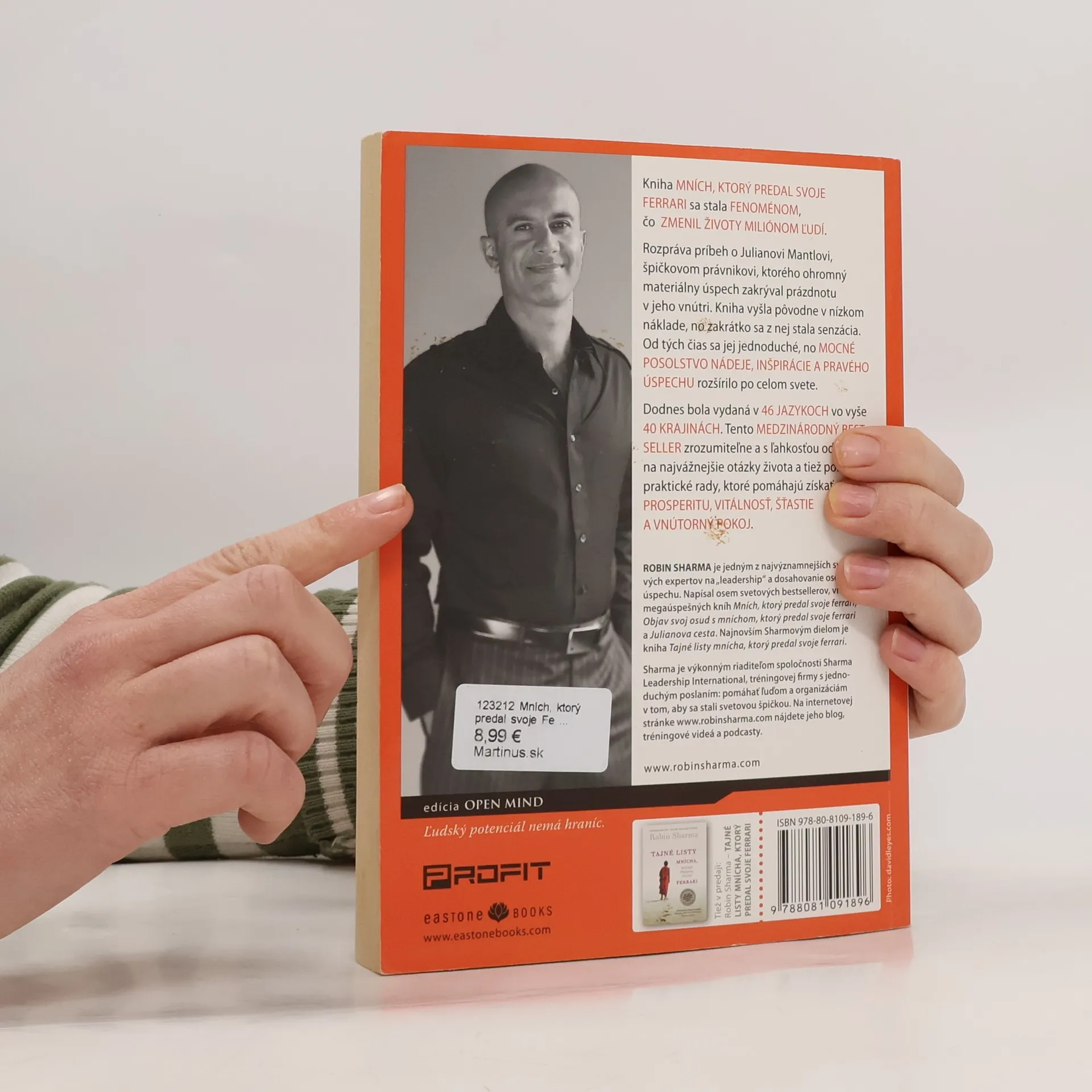Mních, ktorý predal svoje Ferrari, je kniha, ktorá sa stala fenoménom. Vyšla pred desiatimi rokmi a odvtedy zmenila miliónom ľudí život. Rozpráva príbeh o Julianovi Mantlovi, špičkovom právnikovi, ktorého ohromný materiálny úspech zakrýval prázdnotu v jeho vnútri. Kniha vyšla pôvodne v nízkom náklade, no zakrátko sa z nej stala senzácia. Od tých čias sa jej jednoduché, no mocné posolstvo nádeje, inšpirácie a pravého úspechu rozšírilo po celom svete. Dodnes bola vydaná v 46 jazykoch vo vyše 40 krajinách. Tento medzinárodný bestseller zrozumiteľne a s ľahkosťou odpovedá na najvážnejšie otázky života a tiež ponúka praktické rady, ktoré pomáhajú získať prosperitu, vitálnosť, šťastie a vnútorný pokoj.