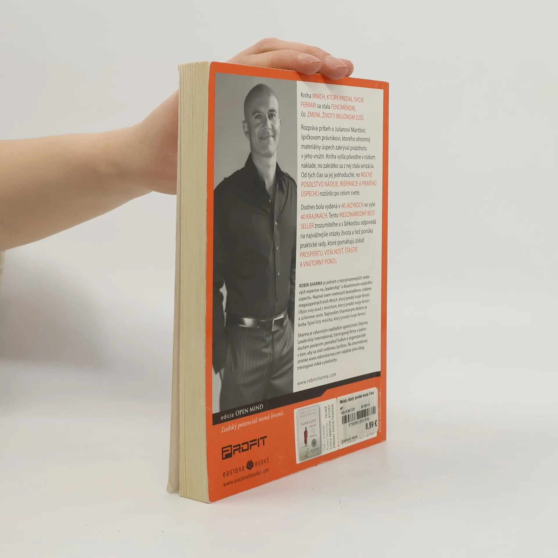 Mních, ktorý predal svoje Ferrari, je kniha, ktorá sa stala fenoménom. Vyšla pred desiatimi rokmi a odvtedy zmenila miliónom ľudí život. Rozpráva príbeh o Julianovi Mantlovi, špičkovom právnikovi, ktorého ohromný materiálny úspech zakrýval prázdnotu v jeho vnútri. Kniha vyšla pôvodne v nízkom náklade, no zakrátko sa z nej stala senzácia. Od tých čias sa jej jednoduché, no mocné posolstvo nádeje, inšpirácie a pravého úspechu rozšírilo po celom svete. Dodnes bola vydaná v 46 jazykoch vo vyše 40 krajinách. Tento medzinárodný bestseller zrozumiteľne a s ľahkosťou odpovedá na najvážnejšie otázky života a tiež ponúka praktické rady, ktoré pomáhajú získať prosperitu, vitálnosť, šťastie a vnútorný pokoj.