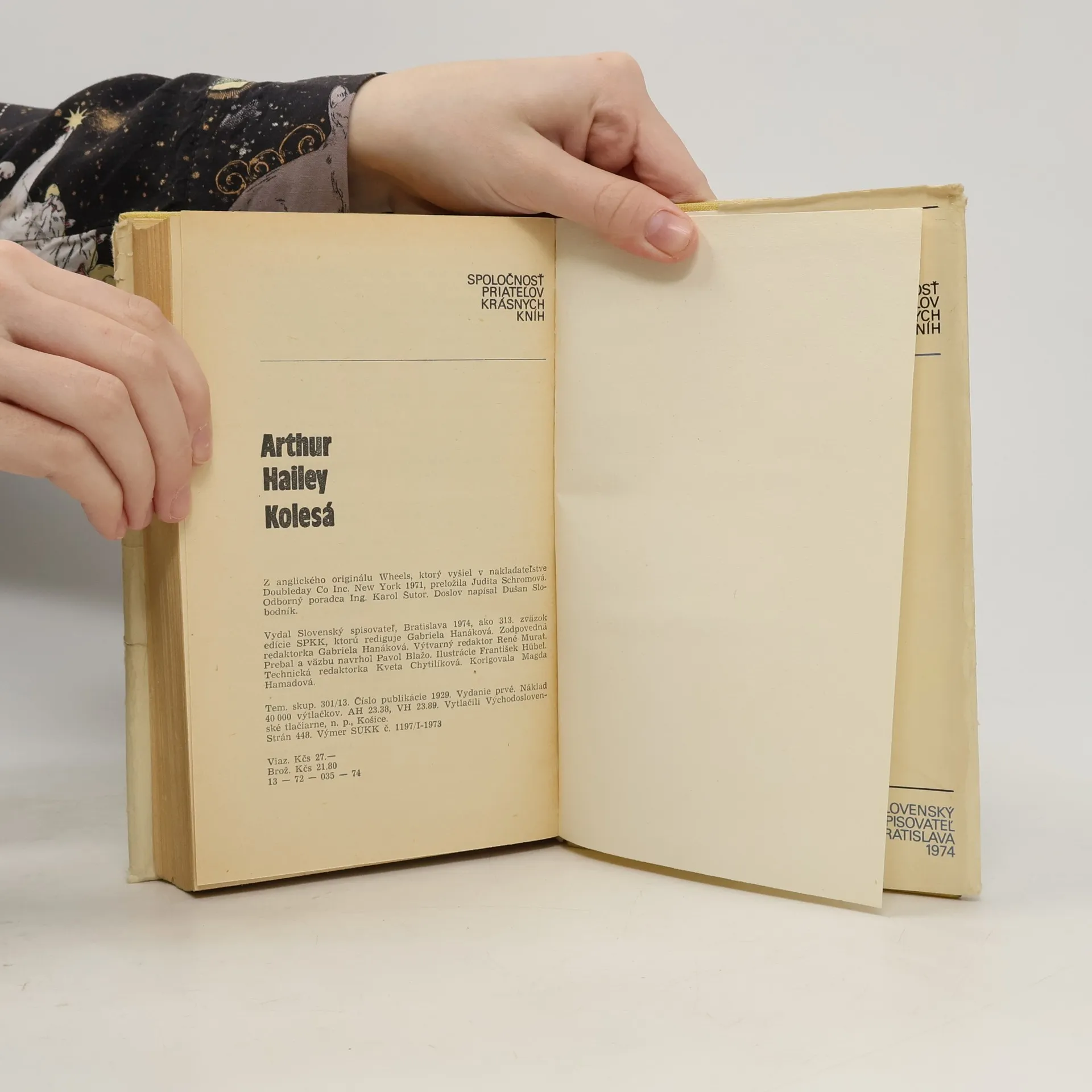 Hailey si pre román Kolesá vybral problematiku moderného automobilového priemyslu v USA. Dejiskom je mesto Detroit, kde je sústredená výroba áut. Sme svedkami konfliktov medzi predákmi a robotníkmi, medzi čiernymi a bielymi, odbormi a vedením závodu, medzi organizovaným klanom a mafiou, nahliadneme do machinácií pri reklame a predaji áut. Prvé vydanie (mimo edicie)