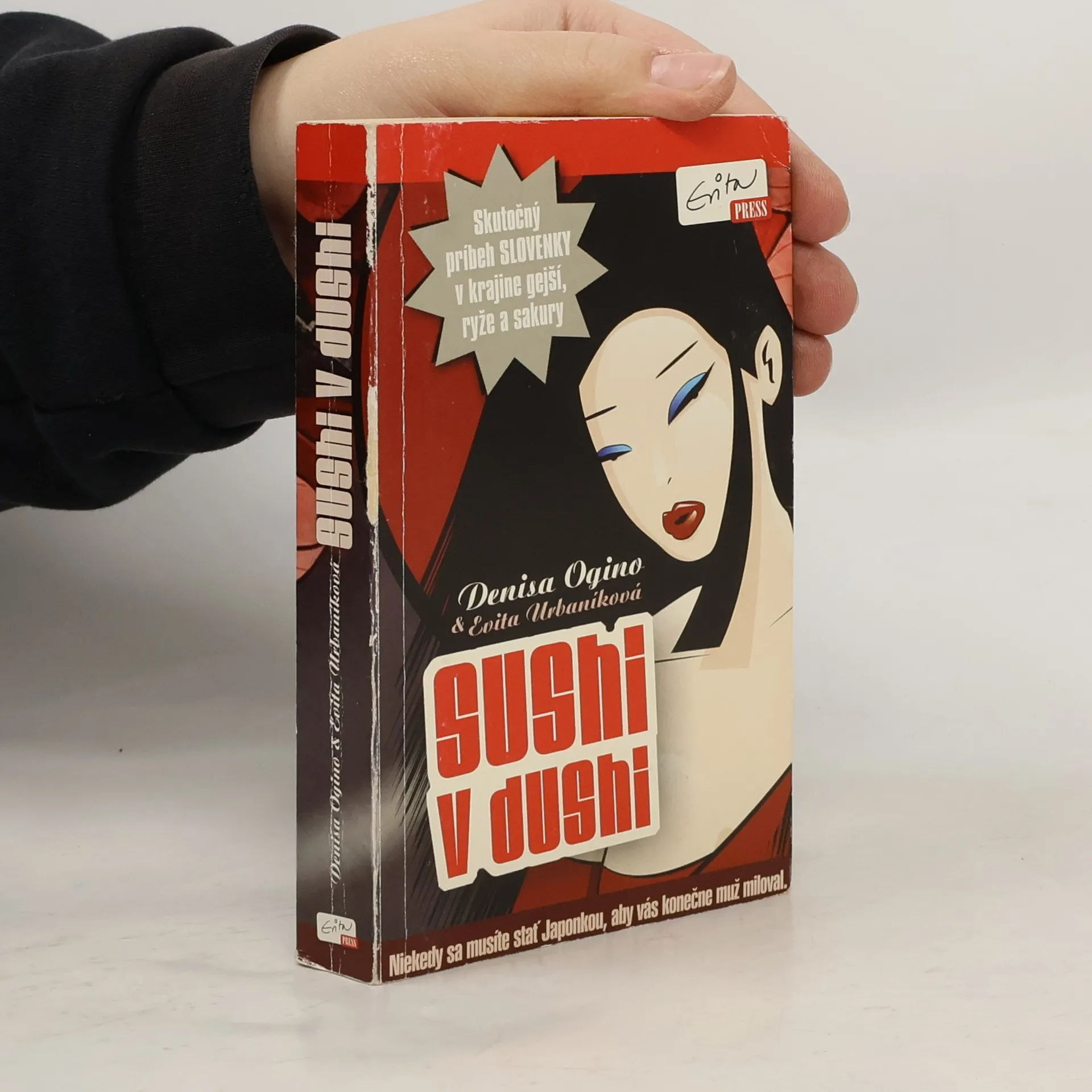 Skutočný príbeh Slovenky v krajine gejší, ryže a sakury. Niekedy sa musíte stať Japonkou, aby vás konečne muž miloval... Jedinečná knižka o Slovenke, ktorá prežila desať rokov v malom japonskom meste s manželom, ktorého ľúbila. S manželom, ktorý ľúbil ju. Ale spôsoby ich lásky boli také rozdielne, že sa aj s malým synom musela vrátiť domov... Čítajte neuveriteľne ľudskú sondu do japonskej kultúry vzťahov, čítajte o tom, že mentalita národov je silnejšia ako láska dvoch ľudí. Čítajte a spoznajte krajinu vychádzajúceho slnka očami Slovenky, ktorá pracovala a žila ako oni. Ako Japonci. V duchu ich tradícií, ich zvykov, ich spôsobu života. Spojenie skutočne prežitého príbehu a šikovného pera Evity Urbaníkovej sľubuje skvelý zážitok všetkým, ktorí vedia, že najlepšie knihy píše život sám...