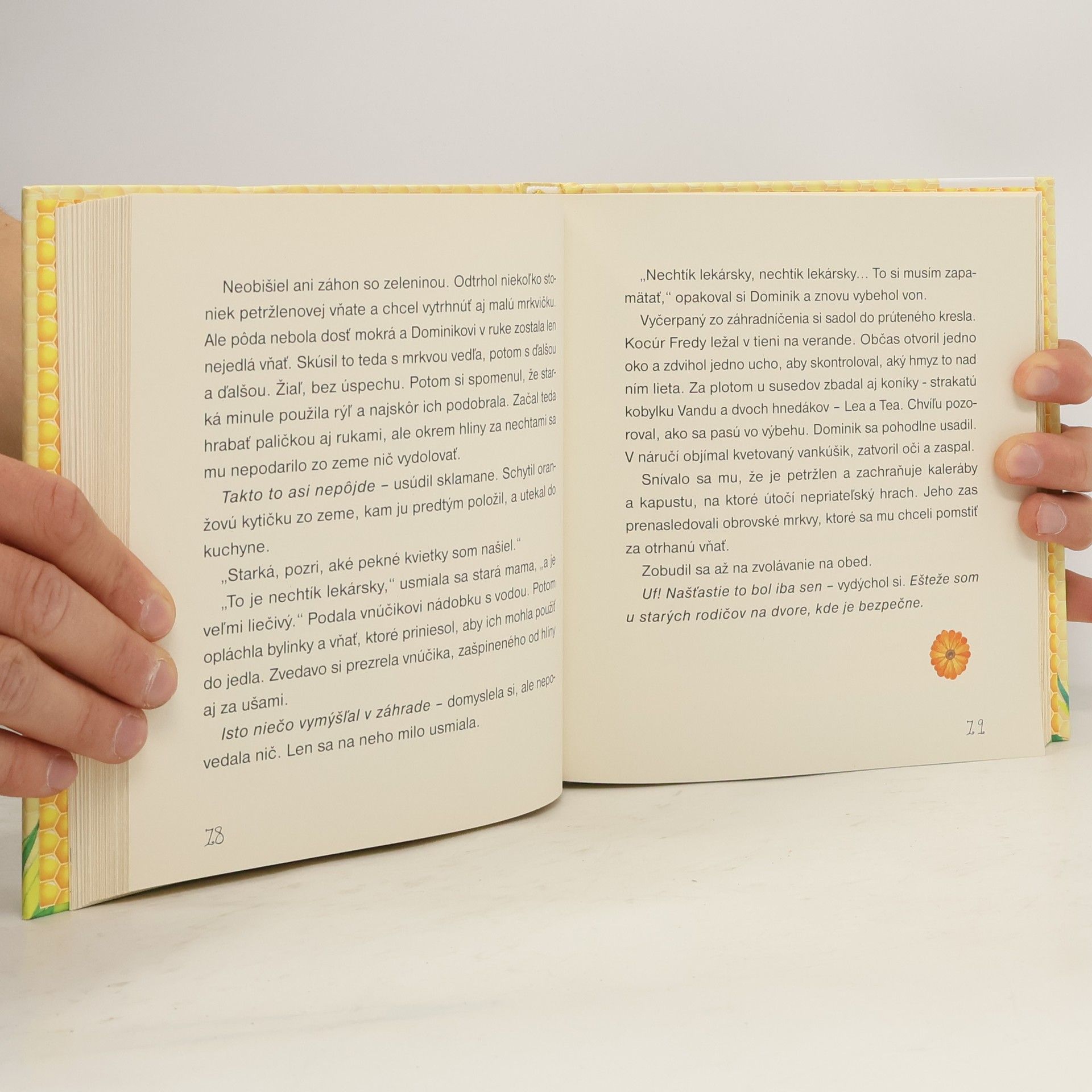 Traja nezbední súrodenci z veľkomesta strávia veselé a veľmi zaujímavé prázdniny na vidieku u starých rodičov. Tam objavia krásu okolitej prírody a jej obyvateľov. Starký, skúsený včelár, na príkladoch zo života v úli ukáže svojim vnúčatám na vlastnosti ako spolupráca, súdržnosť a usilovnosť. Kniha Medové príbehy postupne a zrozumiteľne pre deti odkrýva, čo sa deje počas obdobia jedného roka v mnohopočetných včelích rodinkách, čím sú pre nás ľudí tieto drobné tvory užitočné, čo všetko sa môžeme od nich naučiť a tiež ako ich máme chrániť.Vhodné pre deti mladšieho školského veku