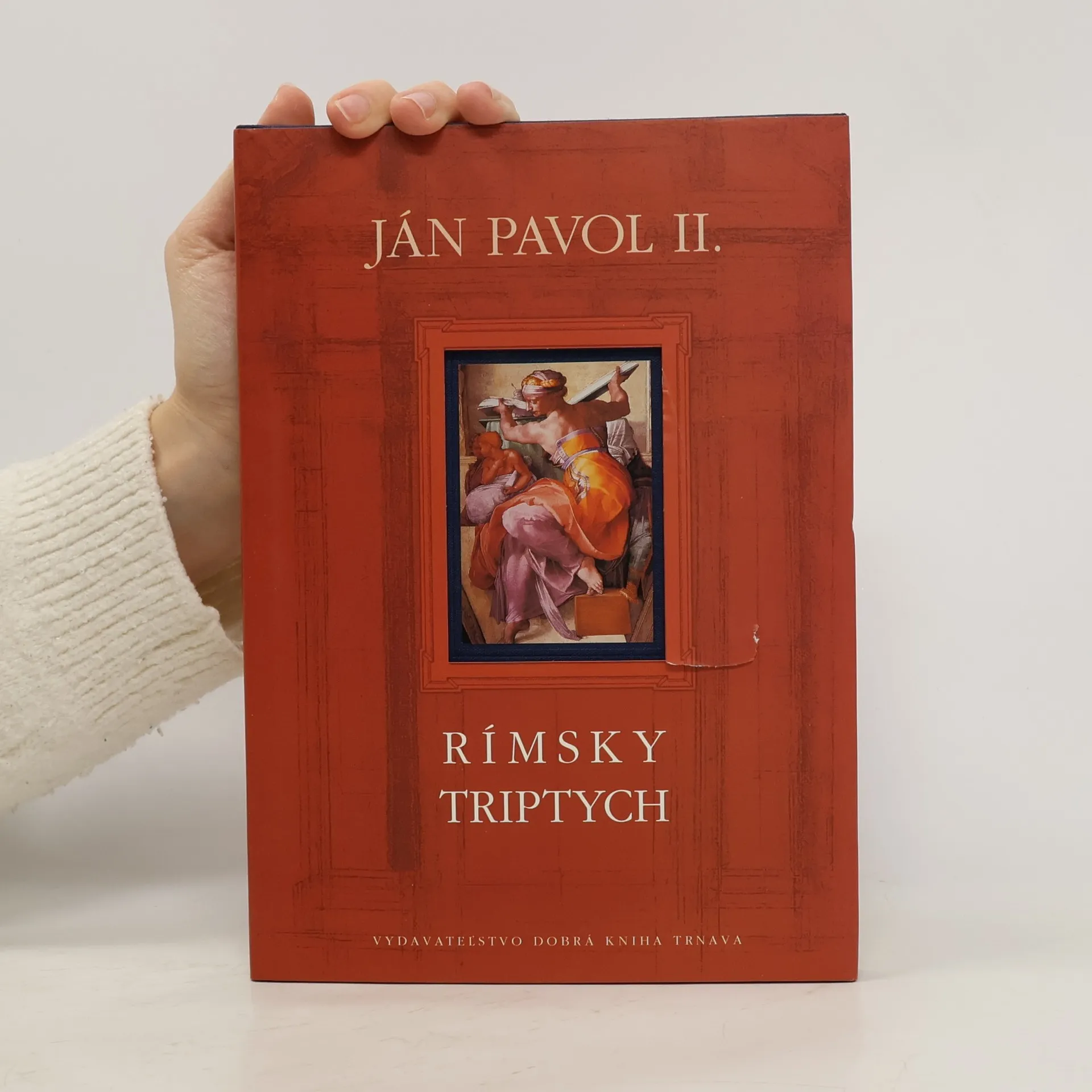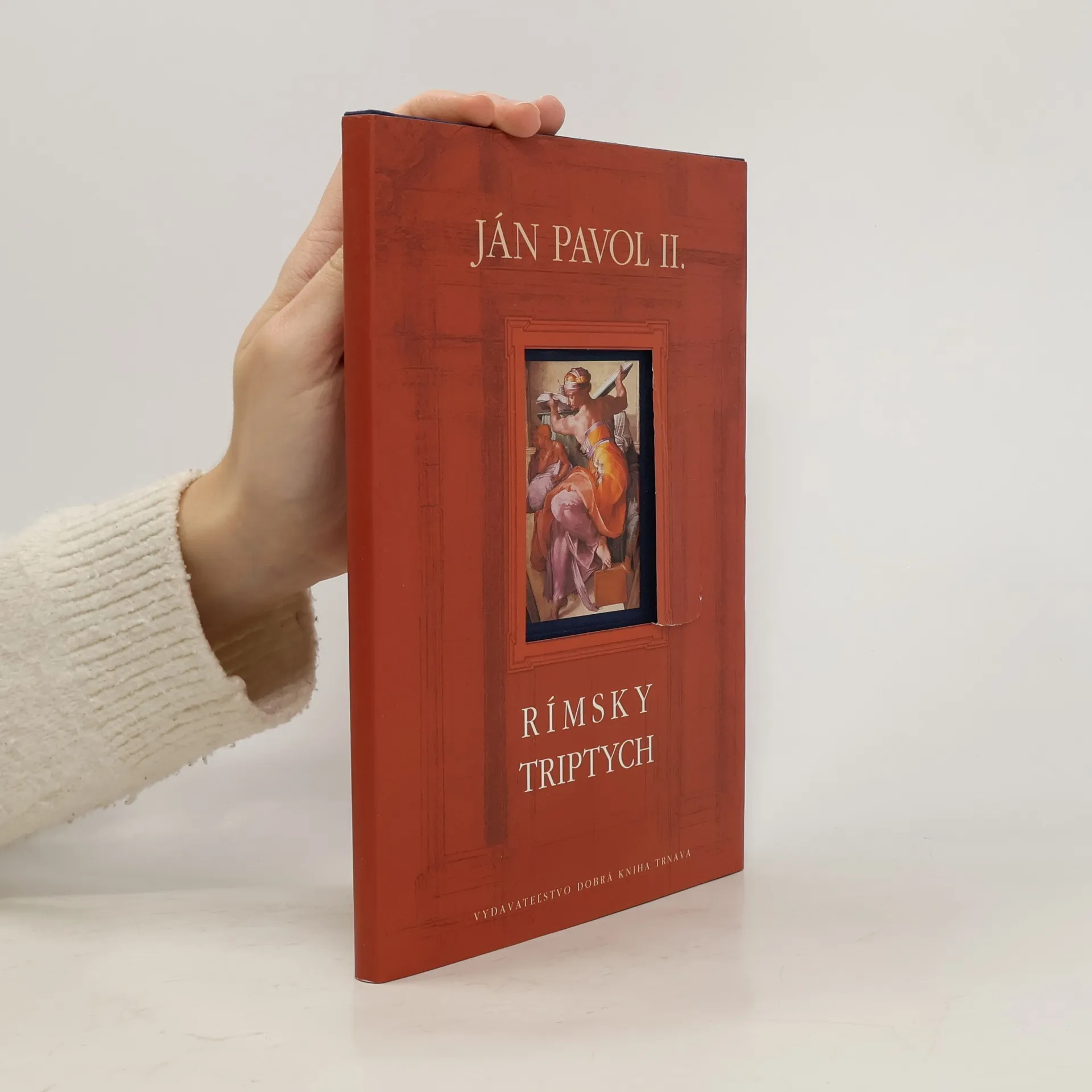 Pre Vydavateľstvo Dobrá kniha je veľkou poctou, že má možnosť ponúknuť vám jedinečné dielo Jána Pavla II. RÍMSKY TRIPTYCH. Je všeobecne známe, že pred zvolením za pápeža bol Karol Wojtyla plodným básnikom. Rímsky triptych je prvé básnické dielo, ktoré zverejnil pod pápežským menom Ján Pavol II. Obsahuje tri fascinujúce meditácie o kráse stvorenia, o Sixtínskej kaplnke a o Abrahámovi. Bibliofilské vydanie ozdobujú reprodukcie Michelangelových diel, faximile rukopisu Svätého Otca a text vyjadrujúci jeho potešenie zo slovenského vydania knihy.