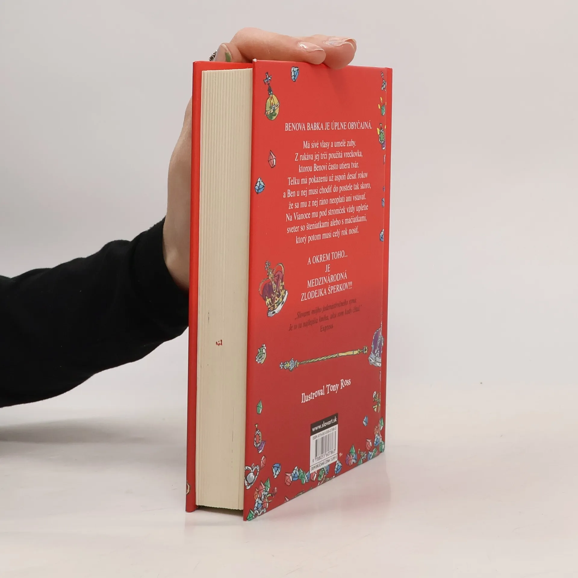 Ben neznáša piatkové večery u svojej babky. Je to tá najnudnejšia babka na svete. Nezaujíma ju nič iné len scrabble a kapustová polievka. Ben však o svojej babke ani zďaleka nevie všetko. Jedného dňa zistí, že zamladi bola medzinárodnou zlodejkou šperkov a navyše celý život sníva o krádeži korunovačných klenotov. Dokáže si babička gaunerka splniť svoj celoživotný sen? A ako jej pri tom môže pomôcť jej vnuk Ben? Zoznámte sa s Benovou babkou. Je to typická babka: Má biele vlasy. Nosí zubnú protézu . V rukáve má zastrčenú špinavú vreckovku. A... je medzinárodnou zlodejkou šperkov!