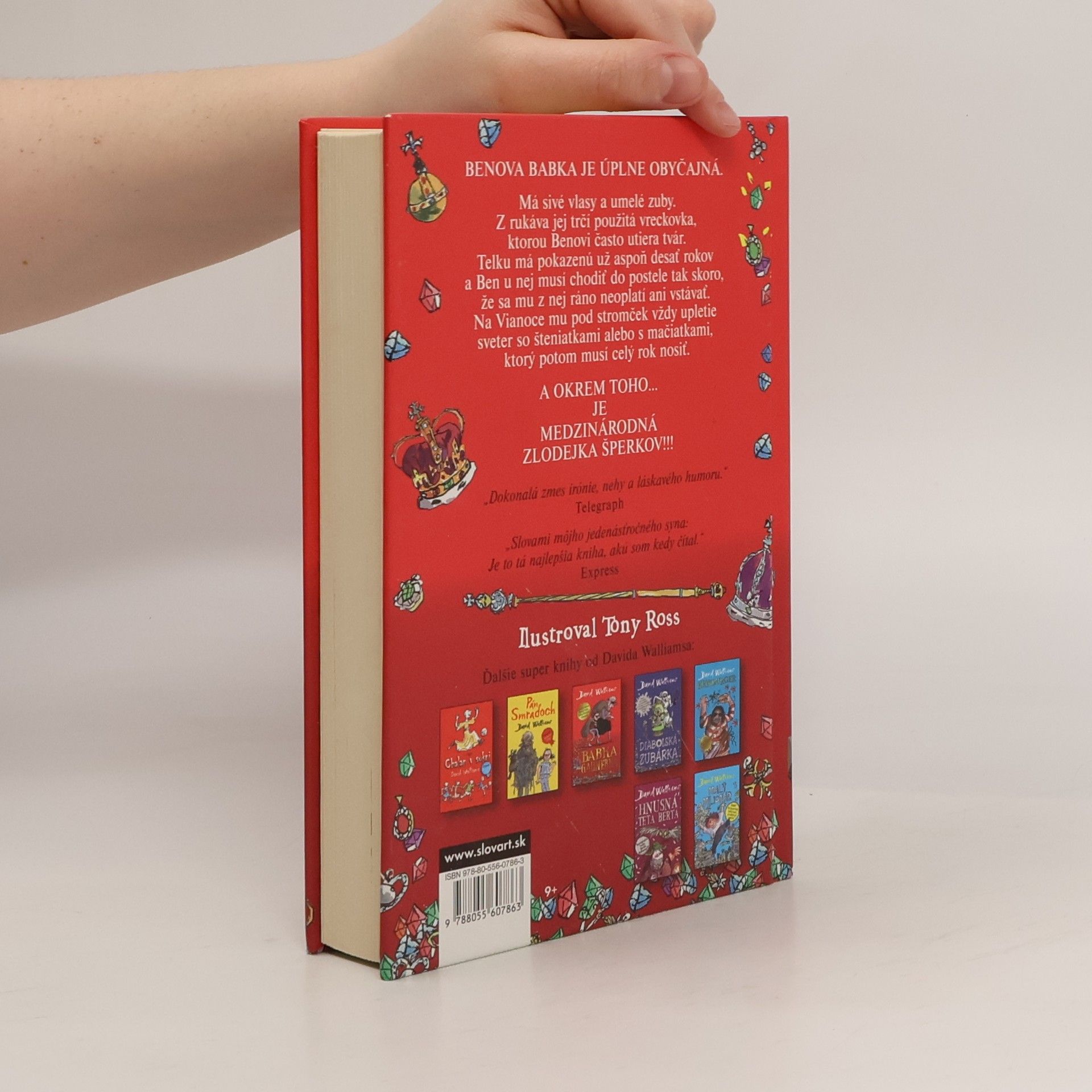 Ben neznáša piatkové večery u svojej babky. Je to tá najnudnejšia babka na svete. Nezaujíma ju nič iné len scrabble a kapustová polievka. Ben však o svojej babke ani zďaleka nevie všetko. Jedného dňa zistí, že zamladi bola medzinárodnou zlodejkou šperkov a navyše celý život sníva o krádeži korunovačných klenotov. Dokáže si babička gaunerka splniť svoj celoživotný sen? A ako jej pri tom môže pomôcť jej vnuk Ben? Zoznámte sa s Benovou babkou. Je to typická babka: Má biele vlasy. Nosí zubnú protézu . V rukáve má zastrčenú špinavú vreckovku. A... je medzinárodnou zlodejkou šperkov!