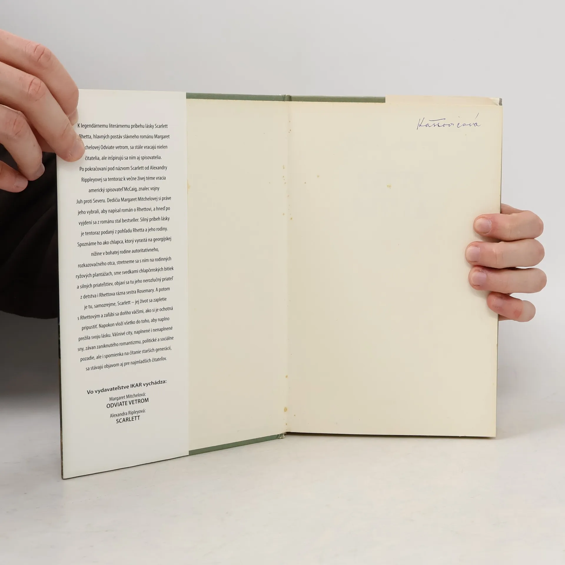 K legendárnemu literárnemu príbehu lásky Scarlett a Rhetta, hlavných postáv slávneho románu Margaret Mitchelovej Odviate vetrom, sa stále vracajú nielen čitatelia, ale inšpirujú sa nim aj spisovatelia. Po pokračovaní pod názvom Scarlett od Alexandry Rippleyovej sa tentoraz k večne živej téme vracia americký spisovateľ McCaig, znalec vojny Juh proti Severu. Dedičia Margarett Mitchelovej si práve jeho vybrali, aby napísal román o Rhettovi, a hneď po vyjdení sa z románu stal bestseller. Silný príbeh lásky je tentoraz teda podaný z pohľadu Rhetta a jeho rodiny. Spoznáme ho ako chlapca, ktorý vyrastá na georgijskej nížine v bohatej rodine autoritatívneho, rozkazovačného otca, stretneme sa s ním na rodinných ryžových plantážach, sme svedkami chlapčenských bitiek a silných priateľstiev, objaví sa tu jeho nerozlučný priateľ z detstva i Rhettova rázna sestra Rosemary. A potom je tu, samozrejme, Scarlett – jej život sa zapletie s Rhettovým a zaľúbi sa doňho väčšmi, ako si je ochotná pripustiť. Napokon vloží všetko do toho, aby naplno prežila svoju lásku. Vášnivé city, naplnené i nenaplnené sny, závan zaniknutého romantizmu, politické a sociálne pozadie, ale i spomienka na čítanie starších generácií, sa stávajú objavom aj pre najmladších čitateľov.