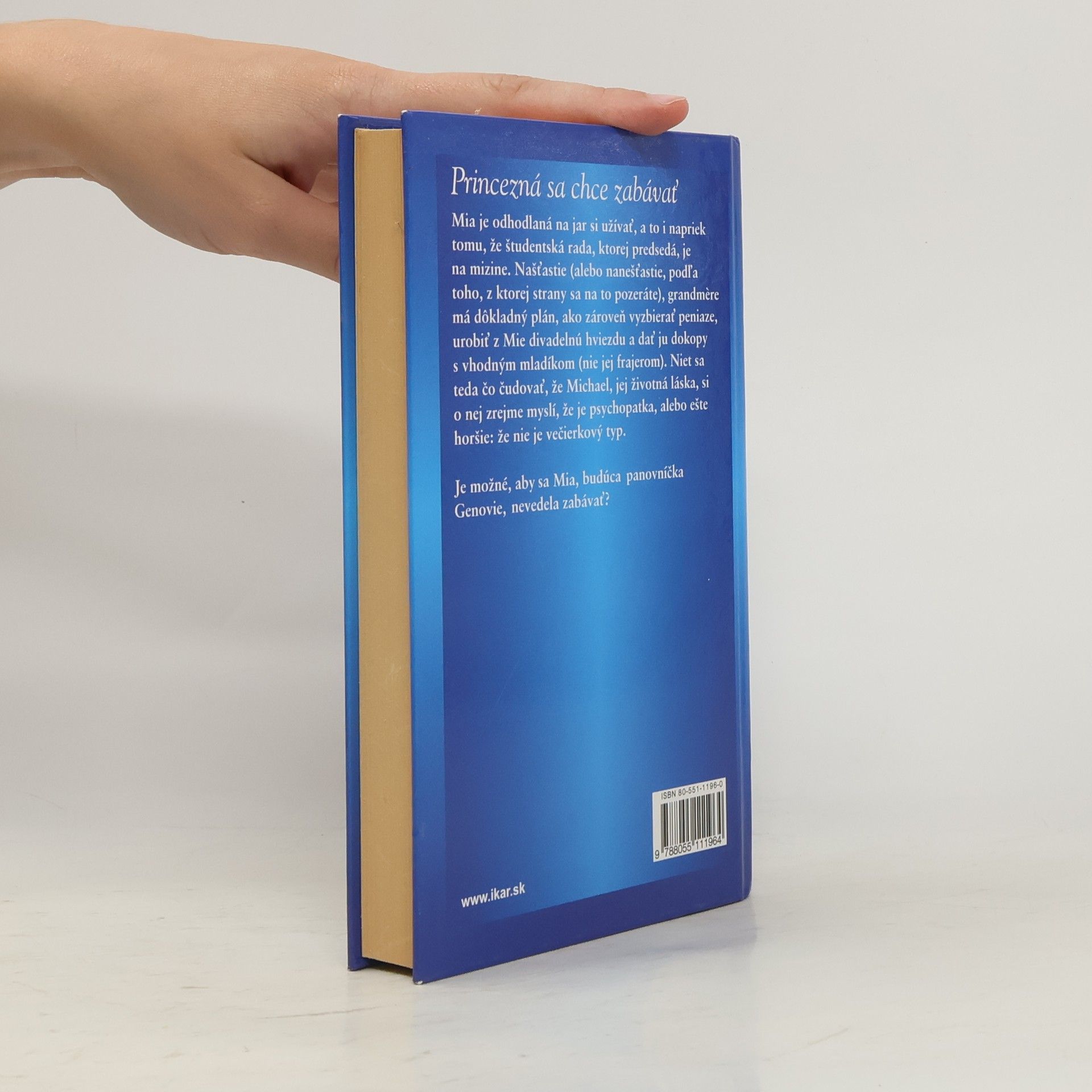 Princezná sa chce zabávať. Mia je odhodlaná na jar si užívať, a to i napriek tomu, že študentská rada, ktorej predsedá, je na mizine. Našťastie (alebo nanešťastie, podľa toho, z ktorej strany sa na to pozeráte), grandmere má dôkladný plán, ako zároveň vyzbierať peniaze, urobiť z Mie divadelnú hviezdu a dať ju dokopy s vhodným mladíkom (nie jej frajerom). Niet sa teda čo čudovať, že Michael, jej životná láska, si o nej zrejme myslí, že je psychopatka, alebo ešte horšie: že nie je večierkový typ. Je možné, aby Mia, budúca hviezda divadelných dosák, predsedníčka študentskej rady a budúca panovníčka Genovie, sa nevedela zabávať?