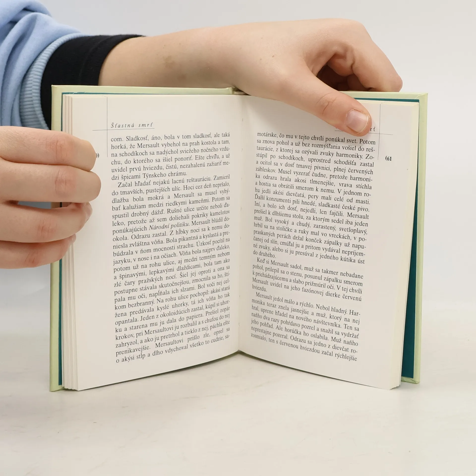 První román slavného filozofa, pozoruhodný natolik, že sám autor ho za svého života odmítal vydat. Camus, jak ho neznáme, Camus ve své mladistvé podobě, Camus rebelující natolik, že se ve své „důstojné éře“ za tento výstřelek styděl, tento svůj román sám vykrádal ve prospěch Cizince a dalších slavných děl, ale k filozofickému vyznění se už nikdy nepřihlásil. V hlavním hrdinovi knihy mladý a nevyrovnaný intelektuál zápasí se všemi svými komplexy, nejistotami a touhami v modelu trochu připomínajícím stylizaci mužného a vznešeného Old Shatterhanda, stvořeného svého času Karlem Mayem. Machistický hrdina je obklopen krásnými a hloupými ženami, které prosí o jeho lásku, konkurencí jsou mu výhradně neschopní muži, kteří mu nesahají ani po kotníky. Jediné, co mu chybí ke štěstí, jsou peníze. Proto přesvědčí invalidního přítele, že nemocný člověk nemá právo na život, že sebevraždou vyřeší problém své nežádoucí existence a svým majetkem zajistí zdravému a silnému jedinci šťastný život. Vyznění knihy je rozporuplné, ale v žádném případě nejde o jednoznačné odsouzení tohoto neobvyklého pohledu na lidskou existenci. Ve Francii byl román vydán až v roce 1971.