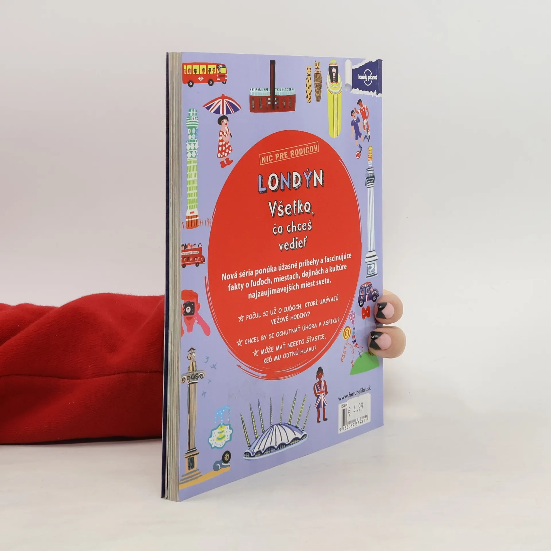 Spoločný názov série pôvabných, vtipných knižiek Nič pre rodičov je akýmsi prísľubom predstaviť ti štyri z najznámejších miest sveta tak, ako ich tvoji rodičia pravdepodobne nepoznajú. V každej z nich nájdeš mozaiku histórie, zaujímavostí, úžasných príbehov a fascinujúcich faktov o ľuďoch, miestach, dejinách a kultúre veľkomiest, ktoré patria k svetovému dedičstvu. Chceš vedieť, prečo v Ríme každý deň vystrelia z dela, ako chutí v Londýne úhor v aspiku, ktorý mrakodrap v New Yorku mal slúžiť ako prístav pre vzducholode alebo kto sa v Paríži rok čo rok usmeje na šesť miliónov ľudí? Prečítaj si knižky, ktoré nie sú určené rodičom.