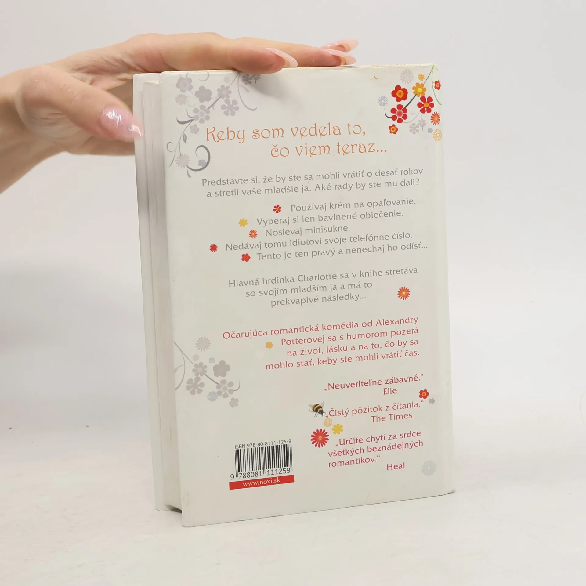 Keby som vedela to, čo viem teraz... Predstavte si, že by ste sa mohli vrátiť o desať rokov späť a stretli vaše mladšie ja. Aké rady by ste mu dali? Používaj krém na opaľovanie, vyberaj si len bavlnené oblečenie, nedávaj tomuto idiotovi svoje telefónne číslo, ale tento je ten pravý a nenechaj ho odísť. Hlavná hrdinka Charlotte sa v knihe stretáva so svojím mladším ja a má to prekvapivé následky ... Charlotte je úspešná v oblasti PR, má vlastnú firmu, kopec peňazí a príťažlivého priateľa. Napriek tomu je neurotická, vystresovaná a pesimistická. Jedného dňa na ceste do práce je uzavretá diaľnica a doprava je odklonená. Počas tejto obchádzky sa Charlotte stretne so svojím o desať rokov mladším ja. Zisťuje, že vtedy bola oveľa bezstarostnejšia a uvoľnenejšia. Staršia Charlotte sa snaží svojej mladšej verzii posunúť rokmi nadobudnuté skúsenosti a zároveň sa ju snaží varovať pred chybami, ktoré počas rokov urobila. Čoskoro sa však aj ona dozvedá niečo podstatné...