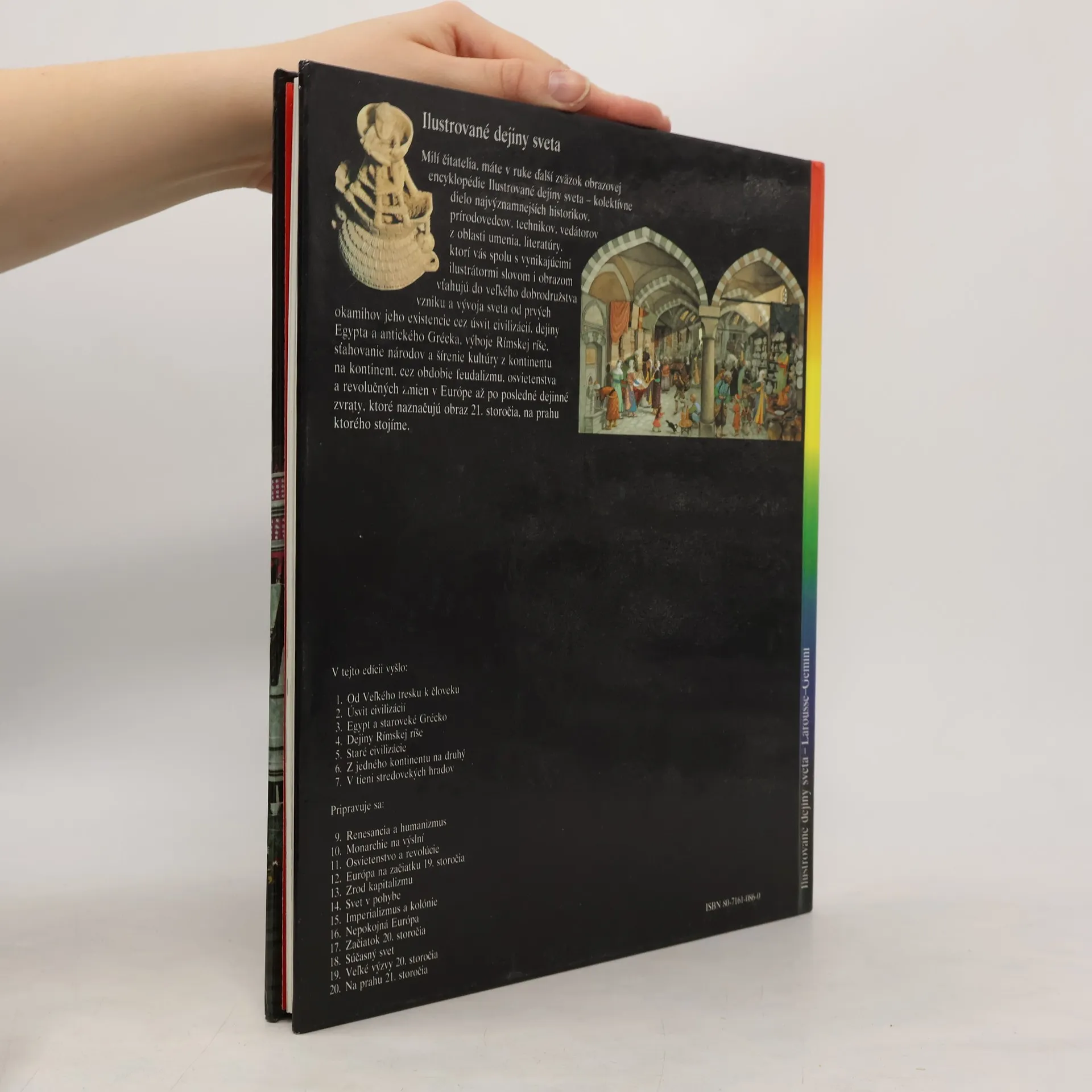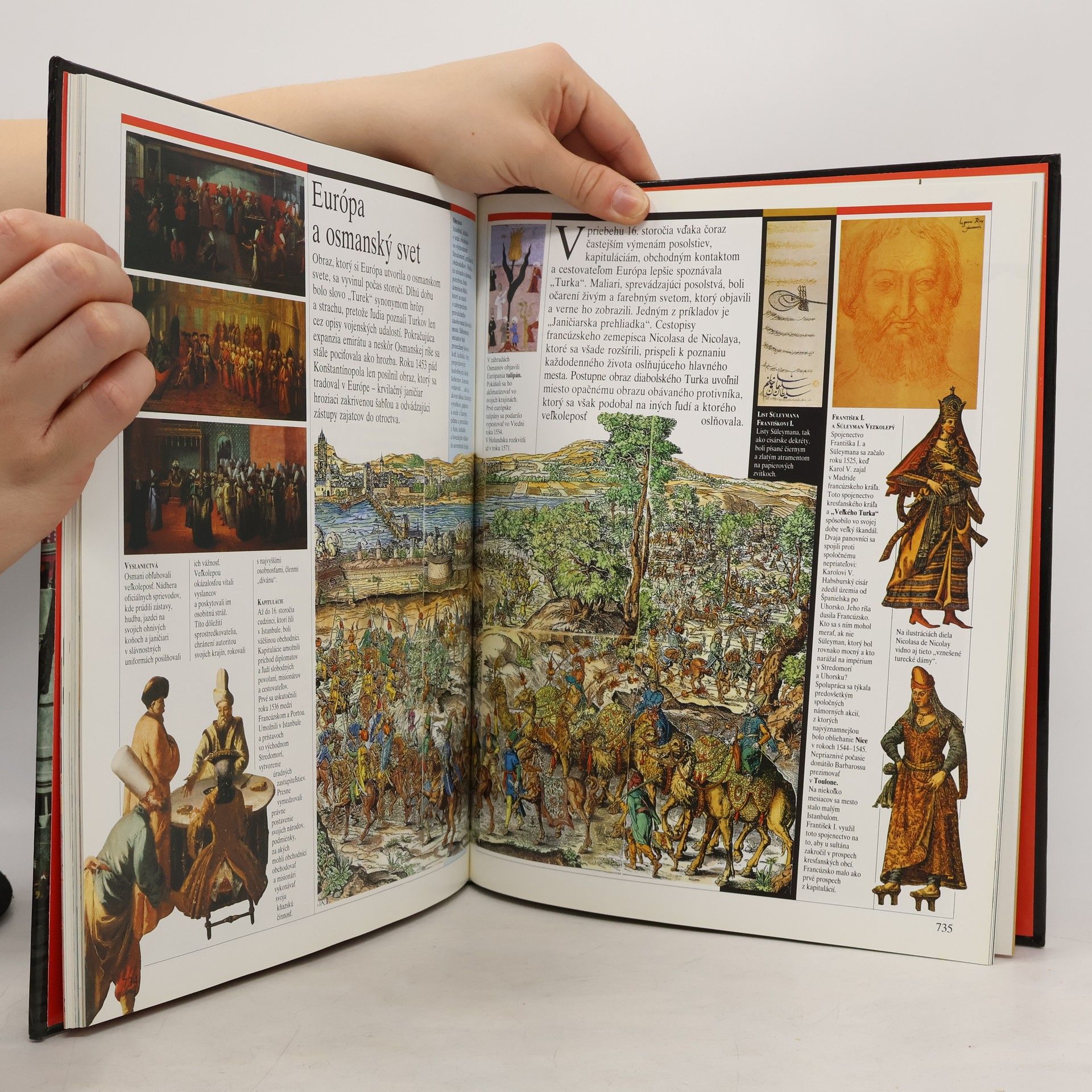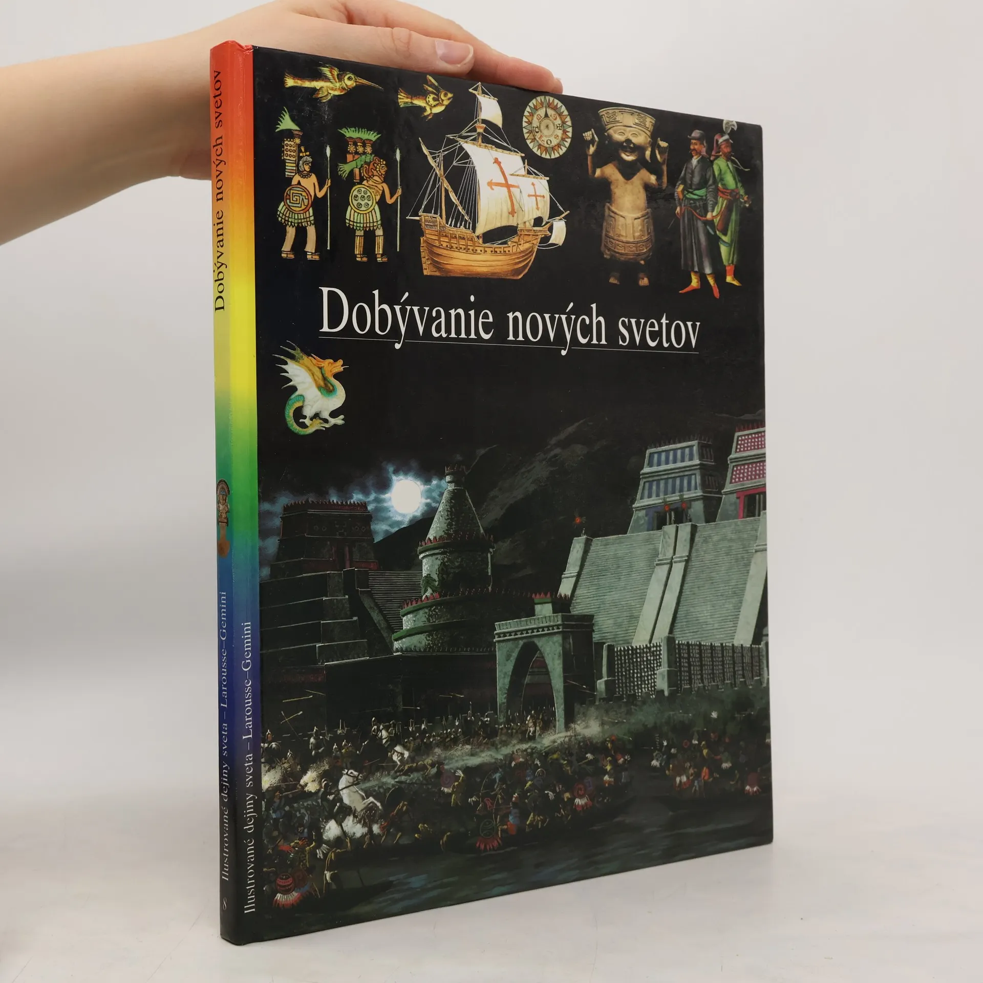 Kapitoly: Hodvábna cesta-Krajina Sérov, Morská cesta, Cesta karaván, Prezradené tajomstvo, Čas arabských obchodníkov, Dobrodružstvo Marca Pola, Dejiny hodvábu, Bádatelia, Obchod s hodvábom. Portugalskí plavci-Atlantická výzva, Zrod karavely, Cesty korenia, Okolo Afriky, Arabský oceán, Indická cesta, Obchodná ríša, Portugalský oceán, Holanďania. Objavenie Ameriky-Španielsko Katolíckych kráľov, Santa María, Na ceste do neznáma, Pozemský raj, Admirál morí, Kolonizácia, Amerika, Magalhaes, Objavitelia. Zlatý vek Osmanov-Zrodenie Osmanskej ríše, Osmanská armáda, Salím I., Süleyman Veľkolepý, Osmanská administratíva, Kúpele, Veľký bazár, Osmanské umenie, Európa a osmanský svet, Bitka pri Lepante. Dobyvatelia-Antily, základňa výbojov, Cortés v Mexiku, Pizarro a Inka, Česť a zisk, Legendy dobytého územia, Zákon silnejšieho, Poznať porazených, Predkolumbovské civilizácie. Španielska a portugalská Amerika-Sieť miest, Smutné Eldorádo, "Indická cesta", Kastová spoločnosť, Osud Indiánov, Misie, Obri na hlinených nohách, K nezávislosti. Prvé vydanie.