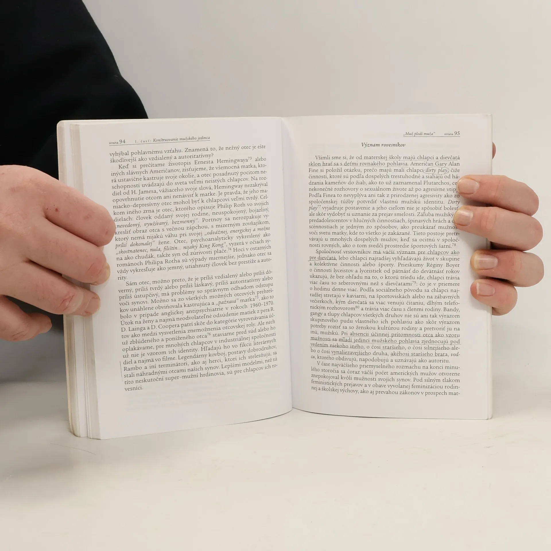 Francúzska filozofka a sociologička v tejto knihe skúma mimoriadne aktuálnu otázku: Ako sa rodí mužská identita, ako sa predstavy o tomto procese menia v kultúrach aj v čase. Dnes, keď zo scény odchádza postava patriarchu, si muži musia prehodnotiť svoju úlohu otca a na ňu nadväzujúcu predstavu o mužnosti. Pokým ženy budú rodiť mužov a XY sa bude vyvíjať v lone XX, muž bude vždy vyrastať i niečo dlhšie a ťažšie ako žena. Presvedčíme sa o tom, ak si v mysli postavíme opačnú hypotézu: ako by vyzeral ženský osud, keby ženy pochádzali z mužského lona? Keď si muži uvedomili túto prirodzenú nevýhodu, vymysleli si odvážne poňatý kultúrny liek: patriarchát. Dnes, keď sa ukazuje, že nastal čas rozlúčky s patriarchom, musia prehodnotiť úlohu otca a na ňu nadväzujúcu mužnosť. Ženy sa so zatajeným dychom a nehou prizerajú tejto premene …