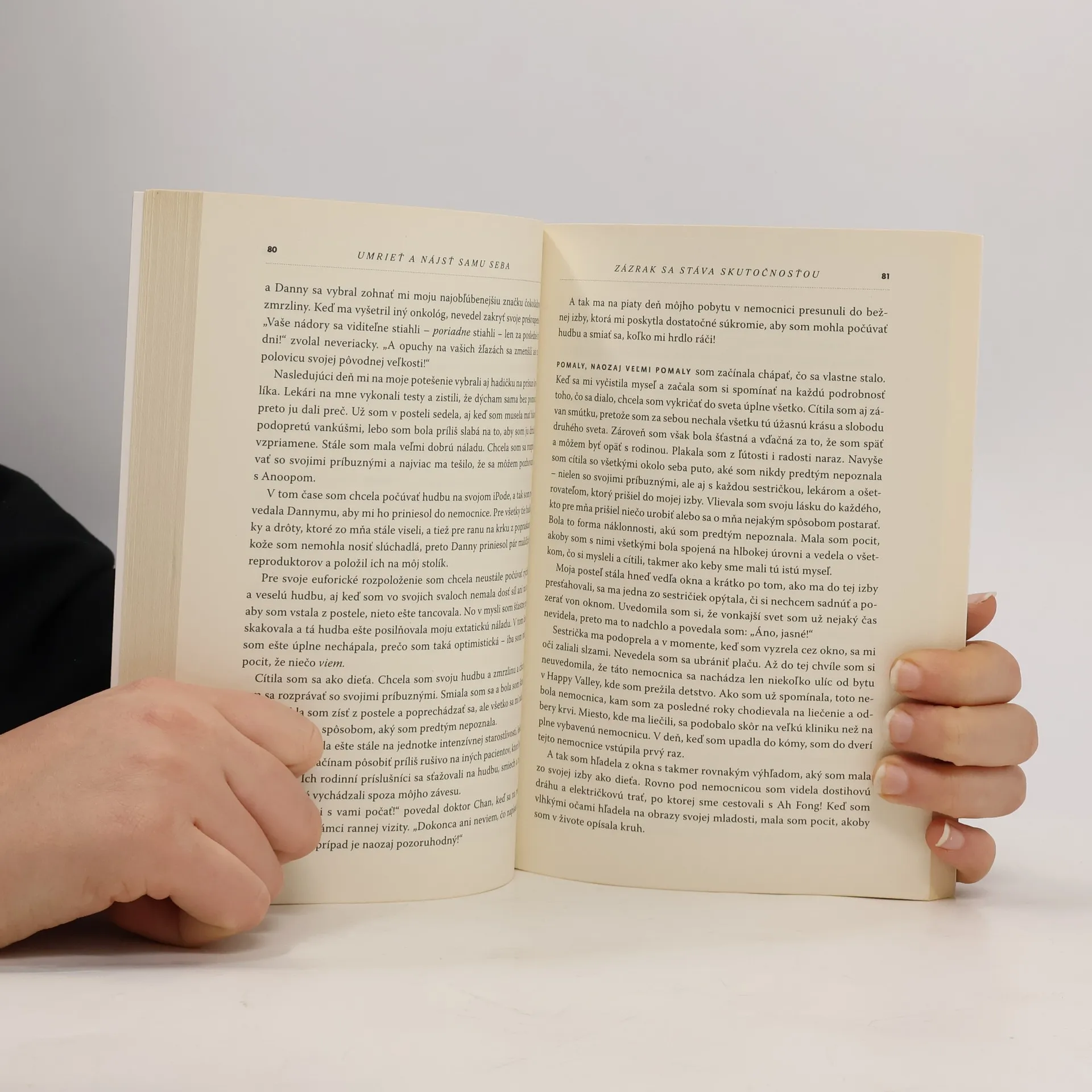 Anita Moorjani štyri roky trpela rakovinou, až jej 2. februára 2006 orgány v zoslabnutom tele vypovedali službu a podľa lekárov bola klinicky mŕtva. Na celých dvadsaťštyri hodín sa ocitla na druhom brehu. Tam pochopila príčiny vzniku svojej choroby, hlbší zmysel svojho bytia, aj to, ako funguje´jeho prepojenie so životom po smrti. Mala možnosť rozhodnúť sa, či zostane, alebo sa vráti späť. Rozhodla sa vrátiť a 9. marca 2006, päť týždňov po prijatí do nemocnice, kde zažila klinickú smrť, ju prepustili domov. Bola úplne vyliečená, po rakovine s metastázami v kostnej dreni a všetkých orgánoch nebolo ani stopy. Lekári to považovali za nemožné. Opakovanými vyšetreniami sa snažili dokázať, že majú pravdu, ale Anita je dodnes zdravá, cestuje po svete a prednáša.