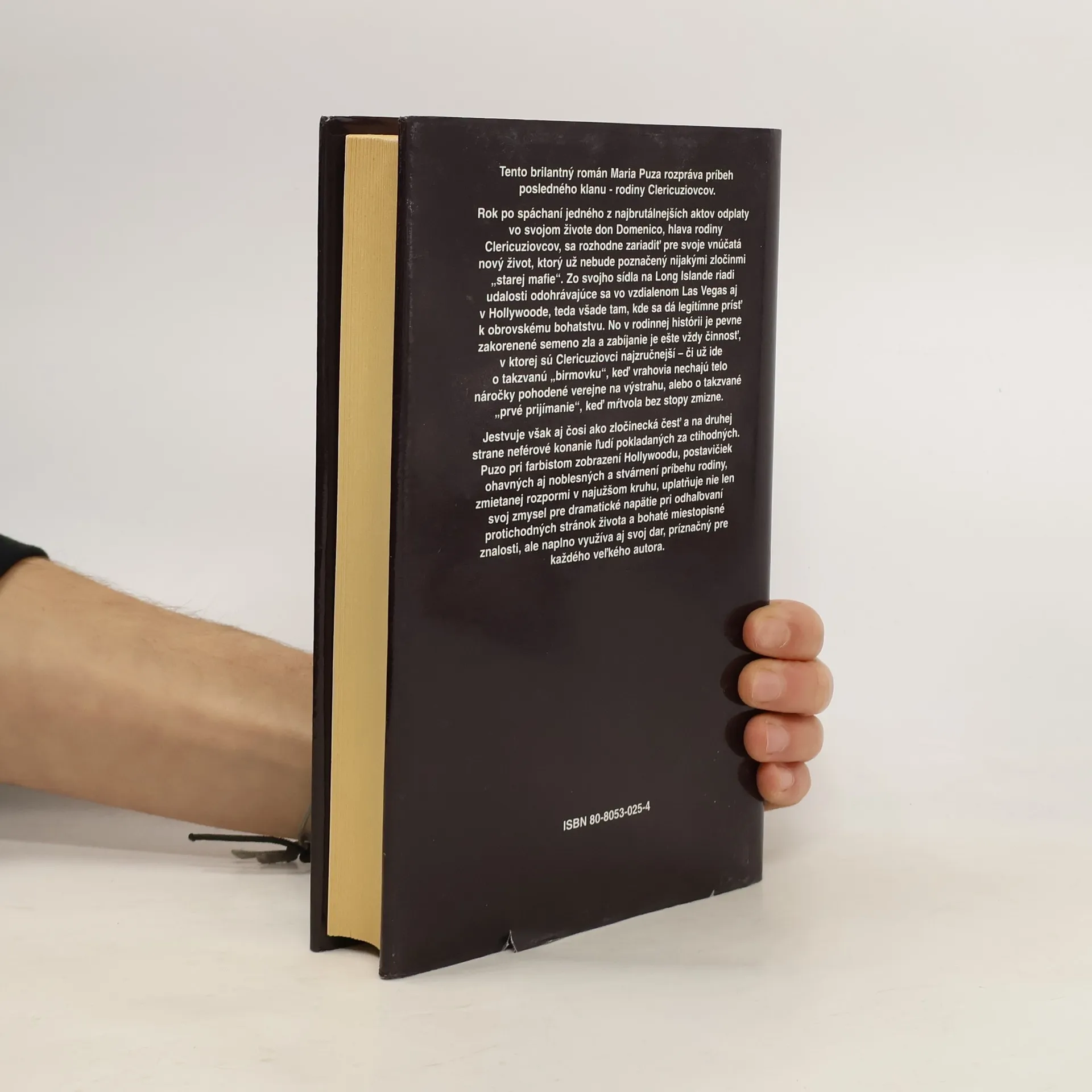 Tento brilantný román Maria Puza rozpráva príbeh posledného klanu - rodiny Clericuziovcov. Rok po spáchaní jedného z najbrutálnejších aktov odplaty vo svojom živote don Domenico, hlava rodiny Clericuziovcov, sa rozhodne zariadiť pre svoje vnúčatá nový život, ktorý už nebude poznačený nijakými zločinmi "starej mafie". Zo svojho sídla na Long Islande riadi udalosti odohrávajúce sa vo vzdialenom Las Vegas aj v Hollywoode, teda všade tam, kde sa dá legitímne prísť k obrovskému bohatstvu. No v rodinnej histórii je pevne zakorenené semeno zla a zabíjanie je ešte vždy činnosť, v ktorej sú Clericuziovci najzručnejší - či už ide o takzvanú "birmovku", keď vrahovia nechajú telo náročky pohodené verejne na výstrahu, alebo o takzvané "prvé prijímanie", keď mŕtvola bez stopy zmizne. Jestvuje však aj čosi ako zločinecká česť a na druhej strane neférové konanie ľudí pokladaných za ctihodných. Puzo pri farbistom zobrazení Hollywoodu, postavičiek ohavných aj noblesných a stvárnení príbehu rodiny, zmietanej rozpormi v najužšom kruhu, uplatňuje nie len svoj zmysel pre dramatické napätie pri odhaľovaní protichodných stránok života a bohaté miestopisné znalosti, ale naplno využíva aj svoj dar, príznačný pre každého veľkého autora.