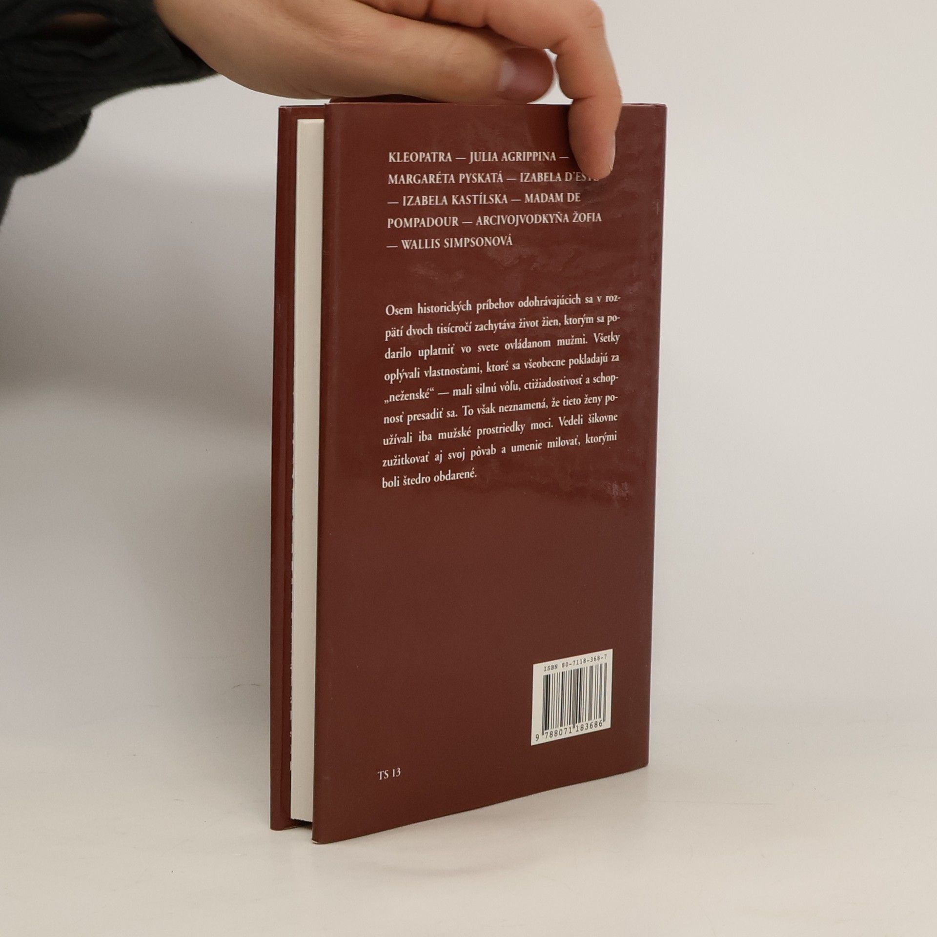 Osem historických príbehov odohrávajúcich sa v rozpätí dvoch tisícročí zachytáva život žien, ktorým sa podarilo uplatniť vo svete ovládanom mužmi. Všetky oplývali vlastnosťami, ktoré sa všeobecne pokladajú za ´neženské´ - mali silnú vôľu, ctižiadostivosť a schopnosť presadiť sa. To však neznamená, že tieto ženy používali iba mužské prostriedky moci. Vedeli šikovne zužitkovať aj svoj pôvab a umenie milovať, ktorými boli štedro obdarené.
