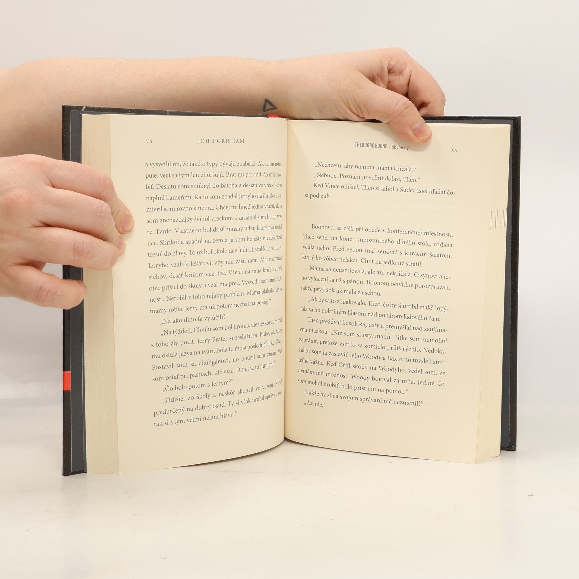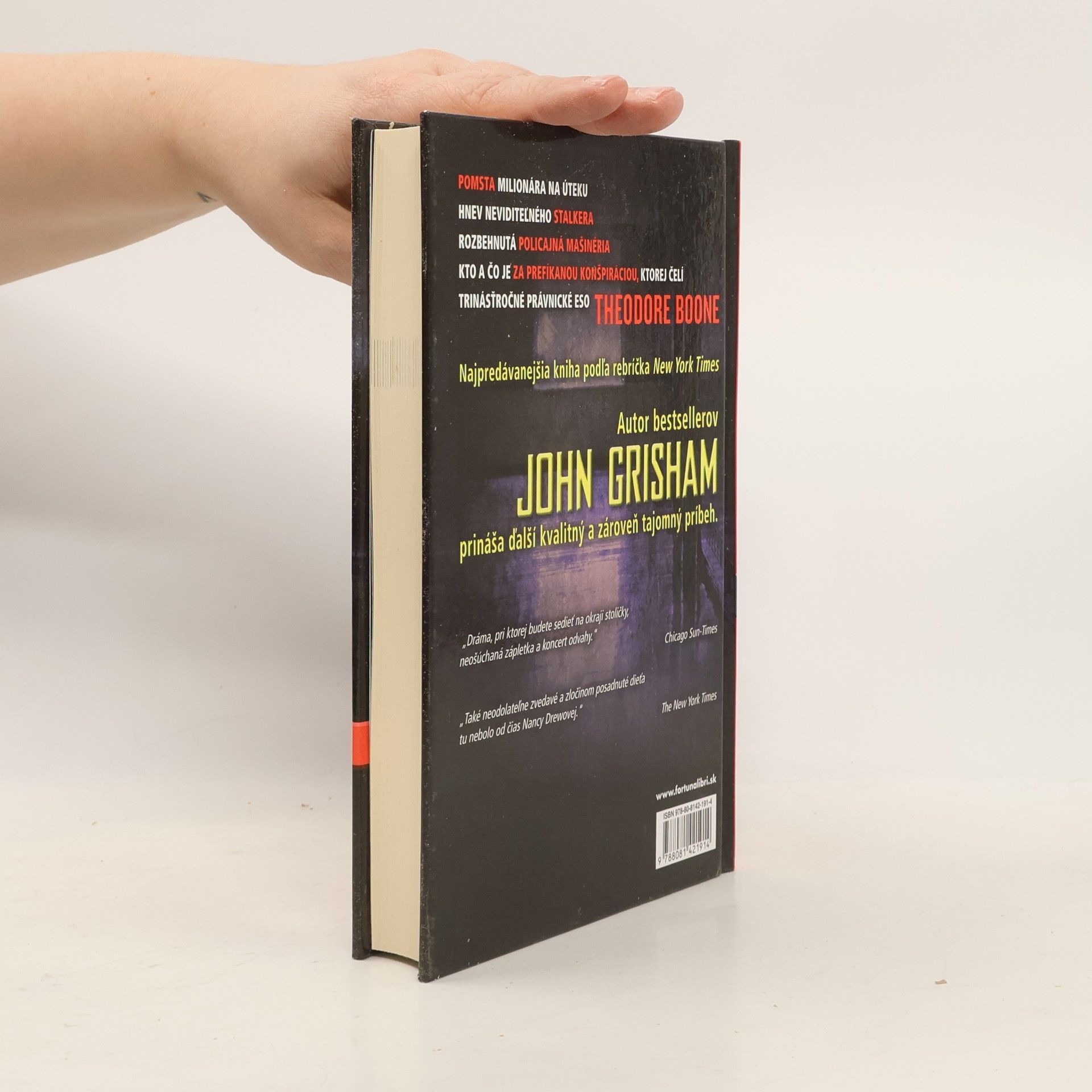 Nad THEODOROM BOONOM sa zbierajú temné mraky. Kým celý Strattenburg netrpezlivo čaká na obnovený proces s neslávne známym Petom Duffym, ktorý je podozrivý z vraždy, v kaši sa ocitne aj strattenburský detský právnik. Theo je obvinený z krádeže. V hre je jeho povesť, a keďže sa mu nad hlavou kopia ďalšie a ďalšie hrozby a dôkazov proti nemu pribúda, urobí čokoľvek, aby dokázal svoju nevinu – aj keby to znamenalo porušiť nejaký ten predpis. Triumfy a triky Theodora Boona sú plné príťažlivého napätia, ktoré čitateľa neopustí do poslednej stránky, vďaka čomu John Grisham získal titul nespochybniteľného majstra detektívok z právnického prostredia a jednotky medzinárodných bestsellerov.