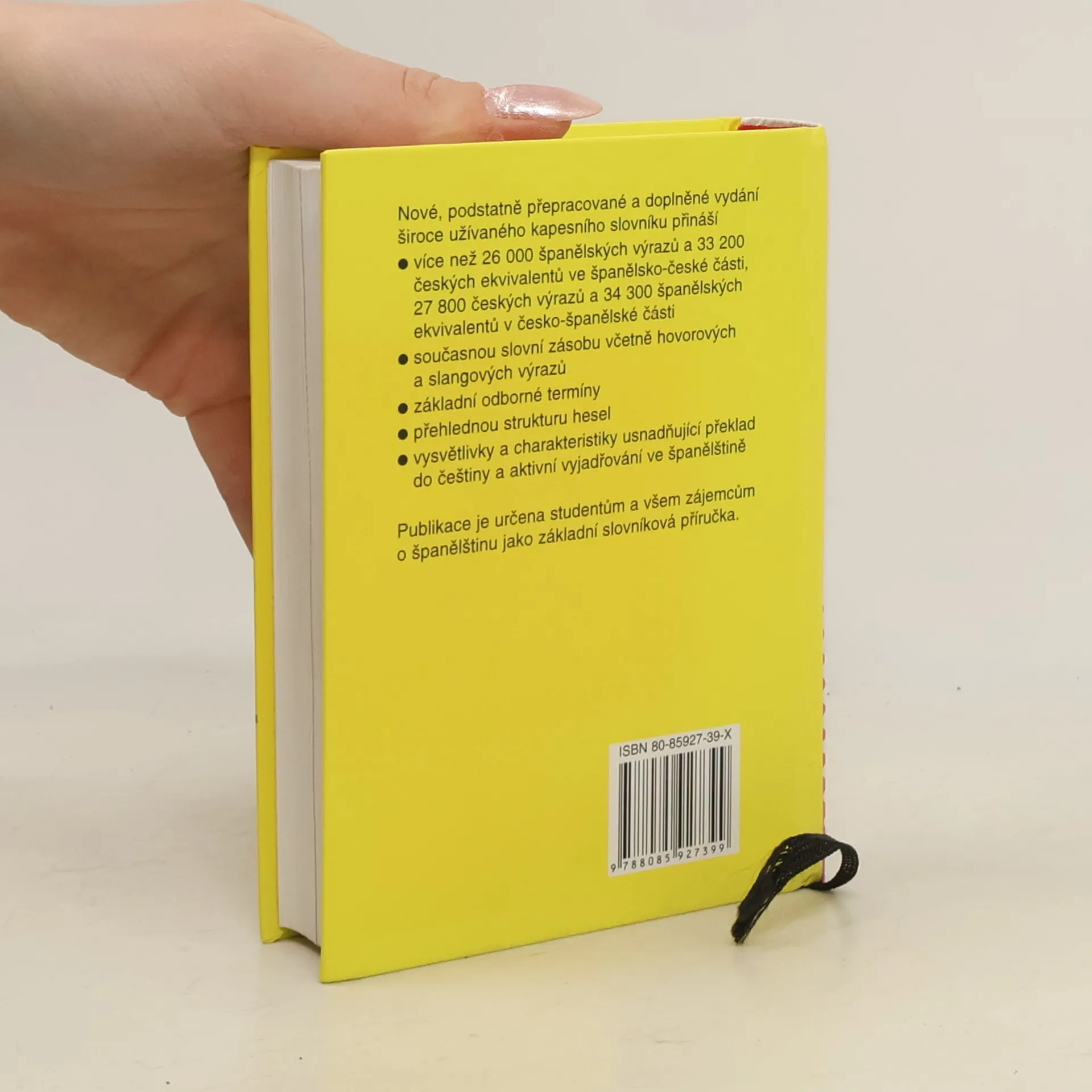 Širokému okruhu uživatelů i pro potřeby škol je určeno přepracované vydání oblíbeného kapesního slovníku. Přináší více než 26 000 španělských výrazů a 33 000 českých ekvivalentů ve španělsko-české části a 27 800 českých výrazů a 34 300 španělských ekvivalentů v části česko-španělské. Kromě běžné slovní zásoby, v níž nechybí ani slangové a hovorové výrazy, slovník obsahuje i základní odborné výrazy z řady oborů a frazeologie.