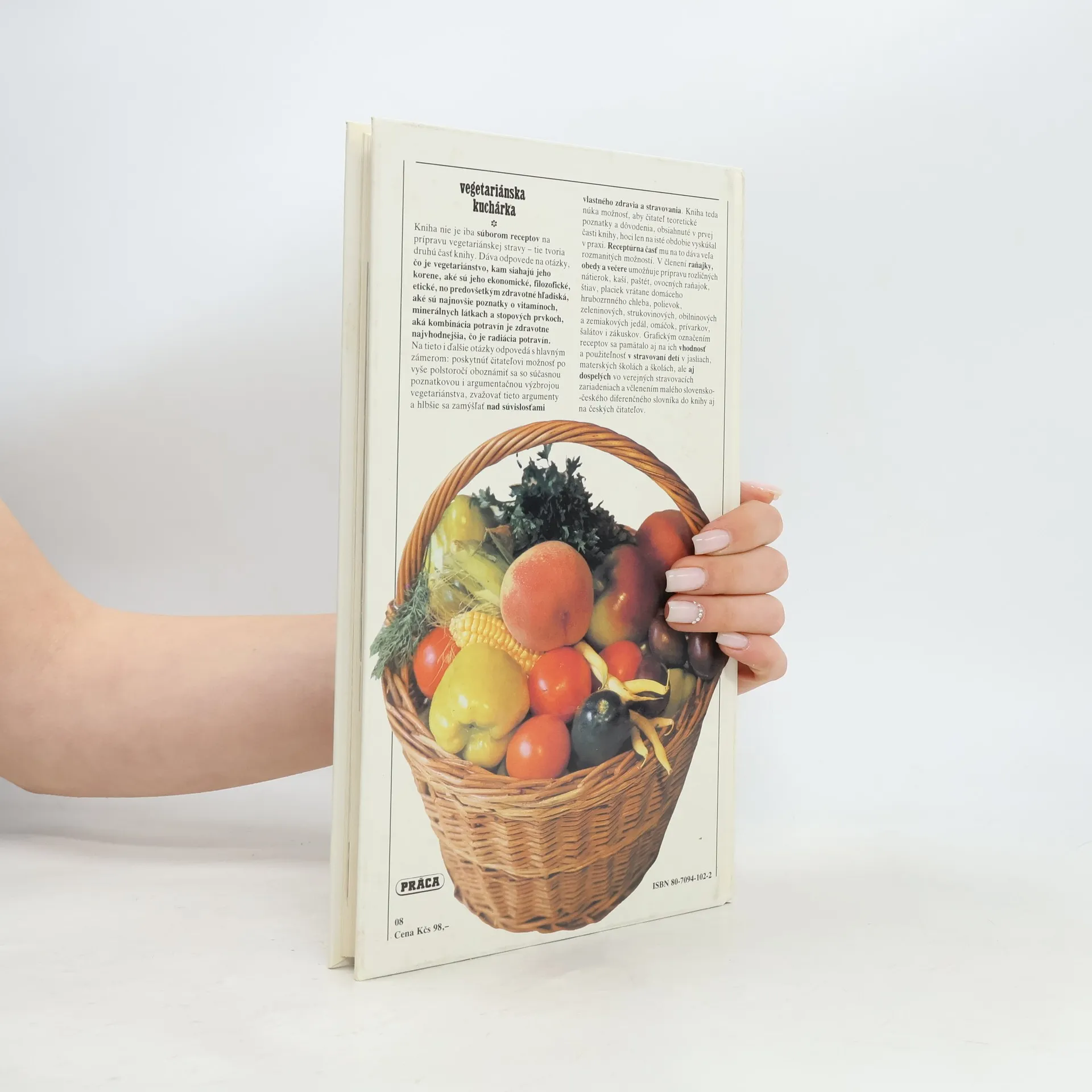 Jedna z prvých kuchárskych kníh, ktorá okrem množstva vegetariánskych receptov (tie tvoria jej druhú časť) obsahuje aj informácie o vegetariánstve. "Dáva odpovede na otázky, čo je vegetariánstvo, kam siahajú jeho korene, aké sú jeho ekonomické, filozofické, etické, no predovšetkým zdravotné hľadiská, aké sú najnovšie poznatky o vitamínoch, minerálnych látkach a stopových prvkoch, aká kombinácia potravín je zdravotne najvhodnejšia i to, čo je radiácia potravín." Receptúrna časť je rozdelená na raňajky, obedy a večere a obsahuje recepty na nátierky, kaše, ovocné jedlá, placky, chlieb, polievky, strukovinové jedlá, omáčky, zákusky a mnoho ďalšieho. Mnohé z receptov sú aj vegánske.
