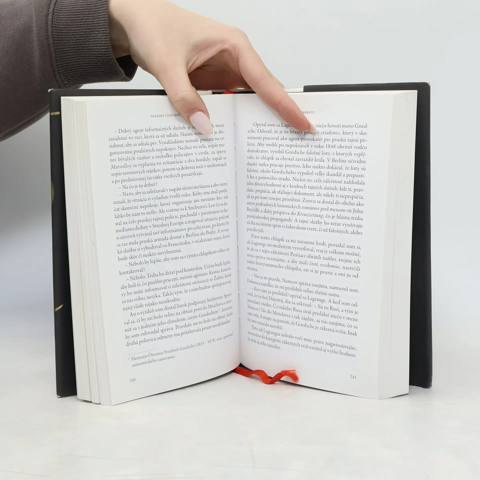 Aj vo svojom najnovšom románe Umberto Eco ponúka čitateľovi podmaňujúcu fresku s množstvom postáv a príbehov. Ale pozor na dôležitý detail: iba hlavný protagonista je fiktívnou postavou a napriek názvu knihy sa do Prahy nikdy nevyberie. Tento Ecov román možno čítať aj ako veľkú učebnicu – najmä dejín a nie takých vzdialených... Simone Simonini je falšovateľ úradných aj neúradných dokumentov, špiceľ tajných služieb, vrah, zdvojená osobnosť, a jeho príbeh je krvavým obrazom európskych dejín od zjednotenia Talianska, cez Parížsku komúnu, až po vznik Protokolov sionských mudrcov