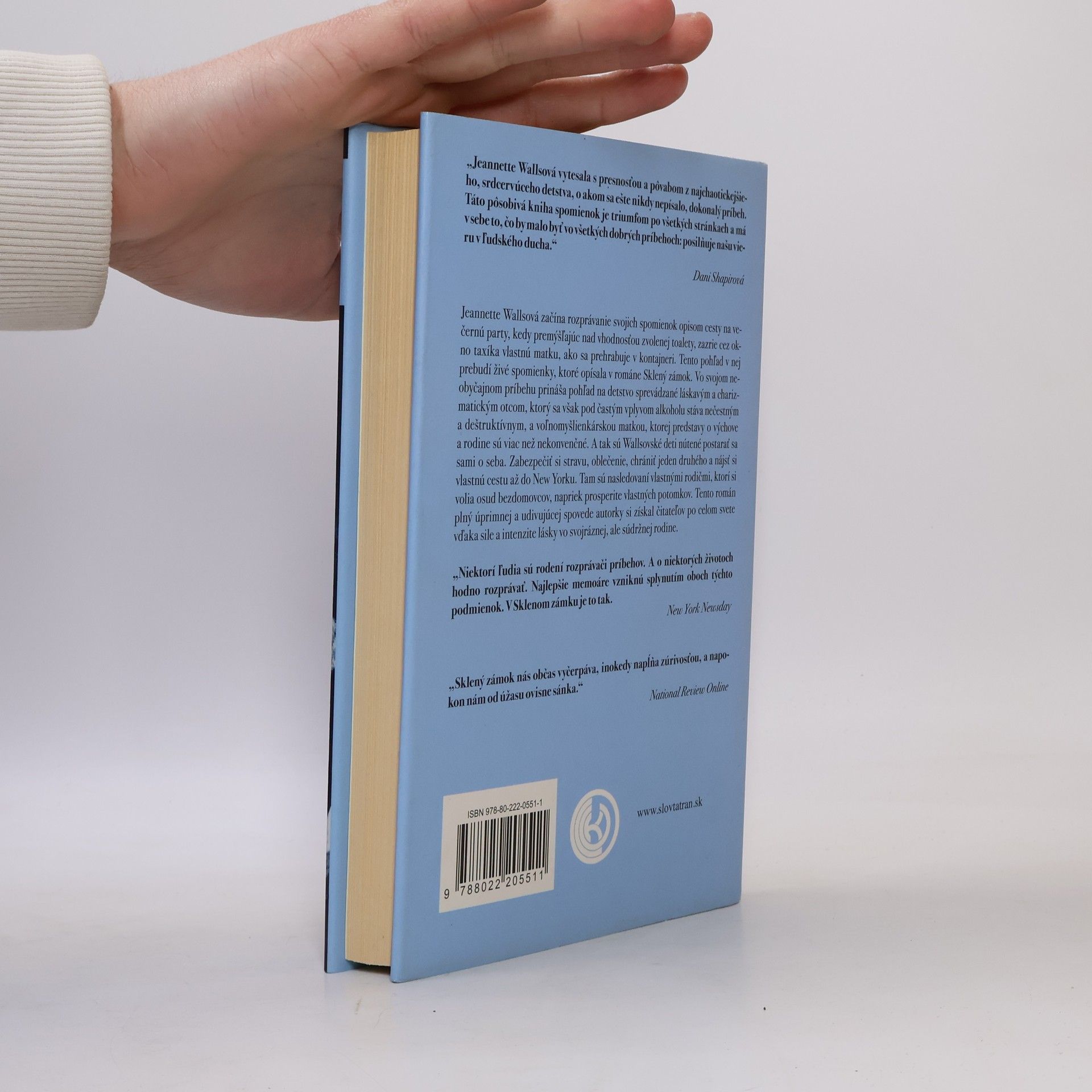 Sklený zámok je román pozoruhodných spomienok, ktoré vypovedajú o nezlomnosti a vykúpení. Odhaľujú život rodiny, ktorá bola hlboko dysfunkčná, no zároveň nesmierne húževnatá. Tento úžasný príbeh je napísaný s hlbokou úctou k hlavným protagonistom, s úprimnosťou a láskou, ktorá ho napĺňa pôvabom. Jeho sila sa skrýva predovšetkým v jeho detskej perspektíve a nesentimentálnom prozaickom stvárnení skutočnosti, keď čitatelia budú žasnúť nad inteligenciou a nezlomnosťou wallsovských detí. Je knihou spomienok prestúpenou intenzívnou láskou k tejto zvláštnej, no lojálnej rodine.
