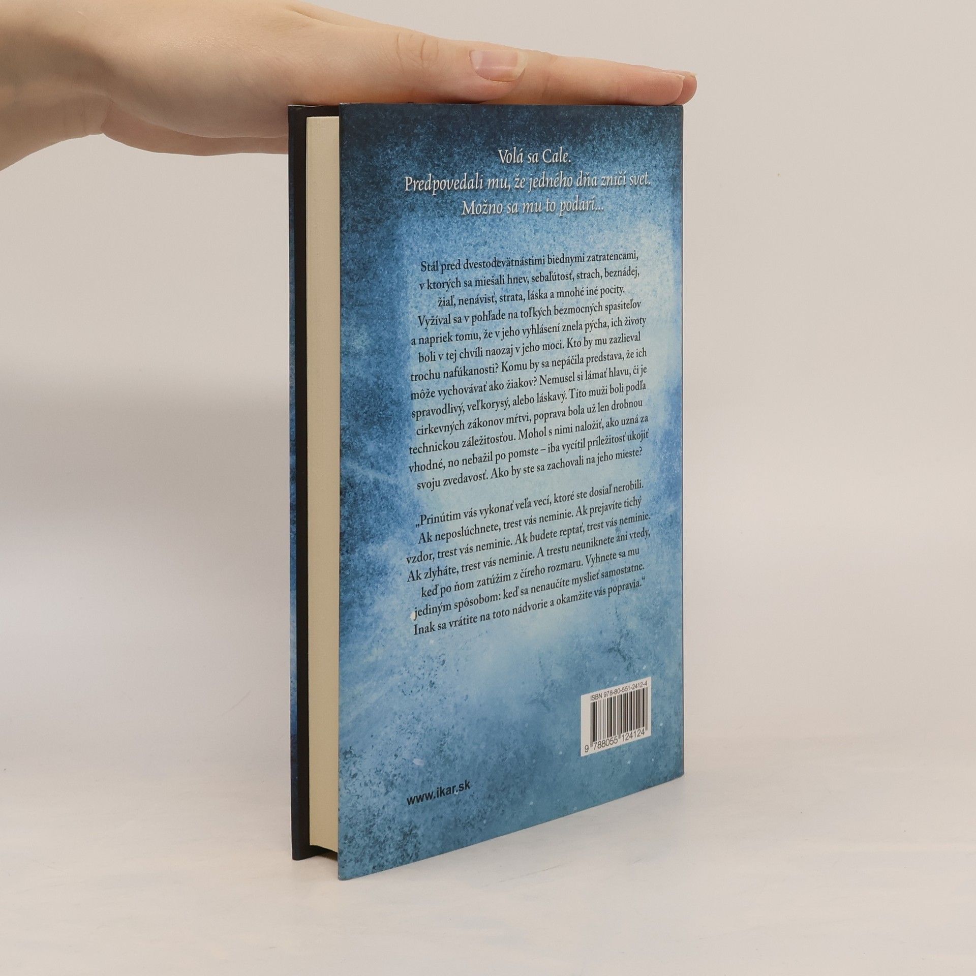 V druhom diele trilógie Paula Hoffmana trpí hlavný hrdina Thomas Cale pocitom roztrpčenia po tom, čo ho zradila láska jeho života, a zahráva sa s čoraz lákavejšou predstavou vyhladenia ľudstva. V sprievode majstra Bosca sa vracia do útulku, kde už nie je chovancom, ale obávaným a uctievaným stelesnením Božieho hnevu. Bosco mu vysvetľuje, že ľudský rod je skrz-naskrz prehnitý, a preto ho treba zničiť a pripraviť svet na príchod dokonalejšej bytosti. No najskôr treba poraziť odporcov a uchvátiť moc v srdci cirkvi spasiteľov. Cesty Caleových priateľov sa rozchádzajú. Kleist sa stáva členom zvláštneho horského klanu zbabelých zlodejov. IdrisPukke odchádza do Španielskeho Leedsu, kde našli útočisko zvyšky rozprášených Materazziovcov. Henri Zahmlievač sa ako jediný rozhodne vyhľadať Calea a zapojí sa do boja proti kacírom. Henri priateľa presviedča, že stále má dôvod žiť. Podarí sa mu to skôr, než bude neskoro?