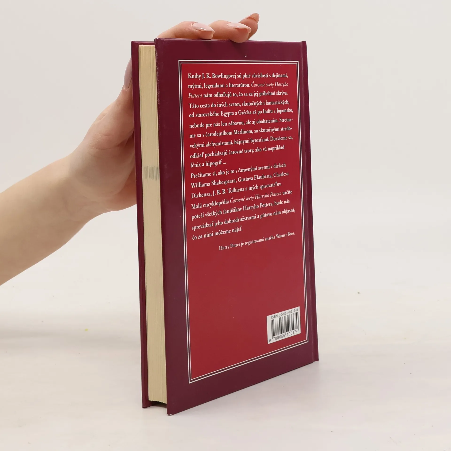 V tejto zábavnej encyklopédii odhalíme zaujímavé súvislosti medzi knižkami o Harrym Potterovi a historickými udalosťami i legendami. Dozvieme sa, z čoho pochádzajú zaklínadlá, ako si ľudia predstavovali čarovné bytosti, prečo študenti z Durmstrangu pricestovali loďou a veľa iných vecí - napr. odkiaľ pochádzajú čarovné tvory, ako napríklad fénix a hipogrif... Prečítame si aj, ako je to s čarovnými svetmi v dielach Williama Shakespeara, Gustava Flauberta, J. R. R. Tolkiena a iných spisovateľov. Pri tejto objavnej výprave do sveta mágie sa nám otvoria dvere, ktoré nás budú lákať nazrieť ďalej do iných vedných disciplín a prebudia v nás chuť začítať sa do starovekých mýtov, legiend a historických kníh