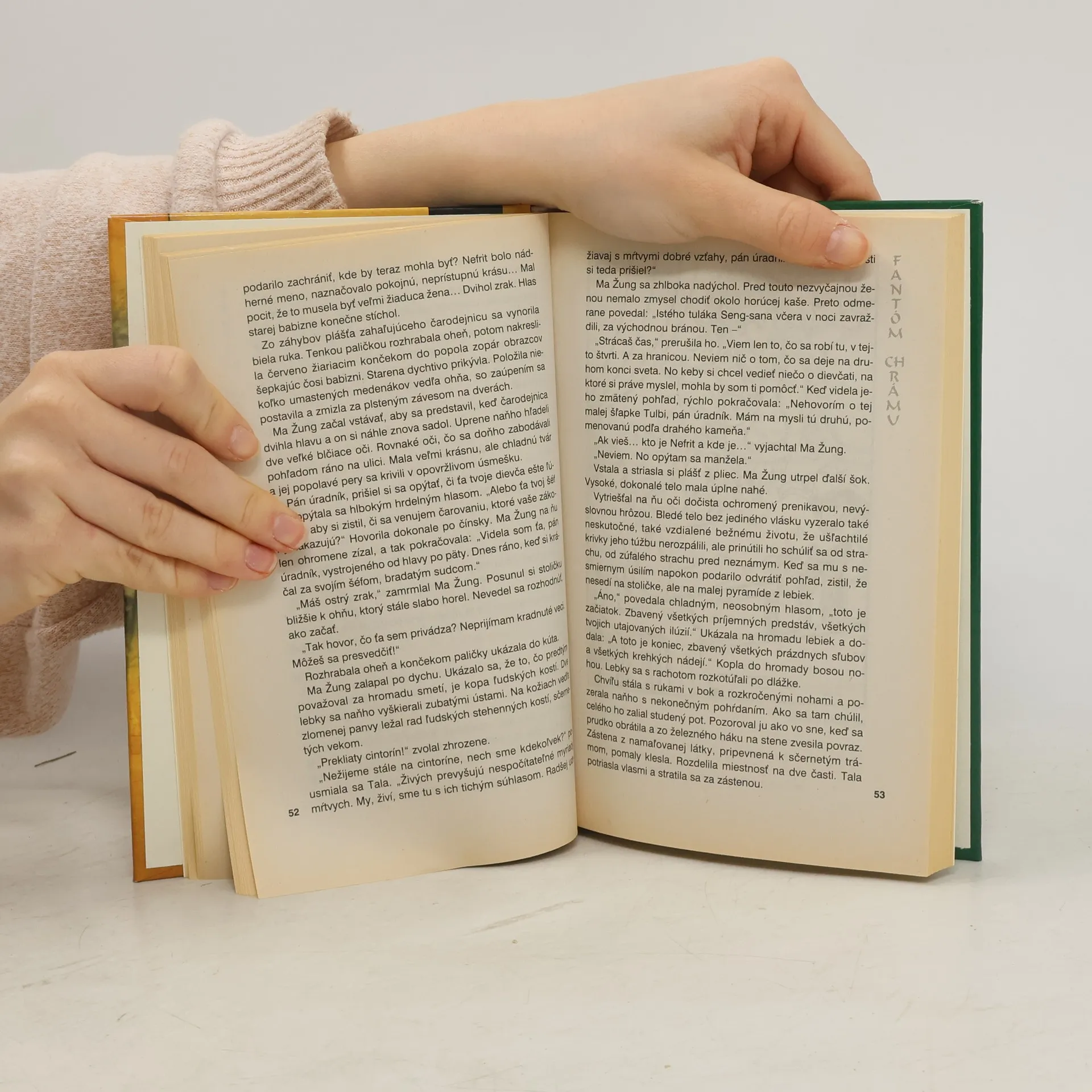Poslední čínský detektivní příběh Roberta van Gulika se odehrává v odlehlém okrese západního pohraničí mocné říše Ťiang. Za východní branou na zalesněném kopci stojí po staletí buddhistický chrám. V něm je spácháno několik vražd – záhadných a brutálních. Způsobuje je fantom chrámu? Vyšetřování soudce Ti je obtížné, hodně mu pomůže věrný seržant Ma Žung, dcera Krále žebráků a krví napsaná zpráva mladé dívky Nefrit. Popis chudinských čtvrtí Číny v sedmém století stejně jako popis příbytků bohatých lidí tvoří zajímavý rámec celého příběhu.