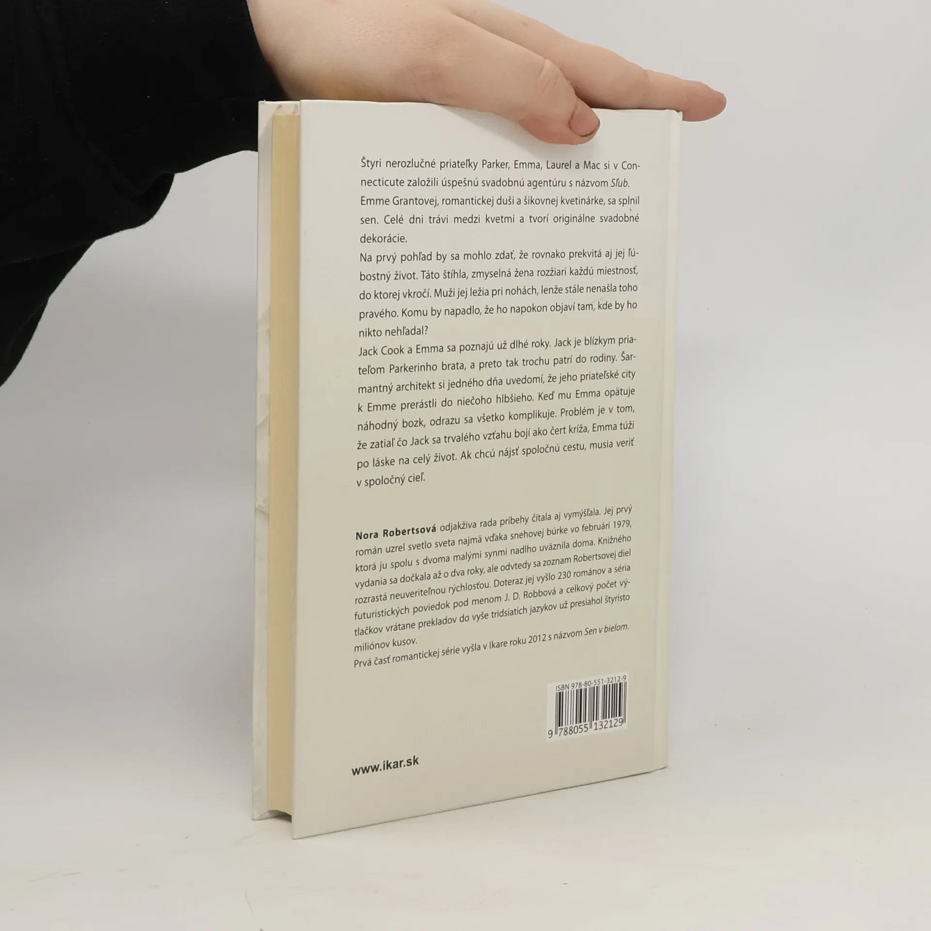 Štyri nerozlučné priateľky Parker, Emma, Laurel a Mac si v Connecticute založili úspešnú svadobnú agentúru s názvom Sľub. Emme Grantovej, romantickej duši a šikovnej kvetinárke, sa splnil sen. Celé dni trávi medzi kvetmi a tvorí originálne svadobné dekorácie. Na prvý pohľad by sa mohlo zdať, že rovnako prekvitá aj jej ľúbostný život. Táto štíhla a zmyselná žena rozžiari každú miestnosť, do ktorej vkročí. Muži jej ležia pri nohách, lenže stále nenašla toho pravého. Komu by napadlo, že ho napokon objaví tam, kde by ho nikto nehľadal? Jack Cook a Emma sa poznajú už dlhé roky. Jack je blízkym priateľom Parkerinho brata, a preto tak trochu patrí do rodiny. Šarmantný architekt si jedného dňa uvedomí, že jeho priateľské city k Emme prerástli do niečoho hlbšieho. Keď mu Emma opätuje náhodný bozk, vzťahy v Sľube sa odrazu všetko komplikuje. Problém je v tom, že zatiaľ čo Jack sa trvalého vzťahu bojí ako čert kríža, Emma túži po láske na celý život. Ak chcú nájsť spoločnú cestu, musia veriť v spoločný cieľ.
