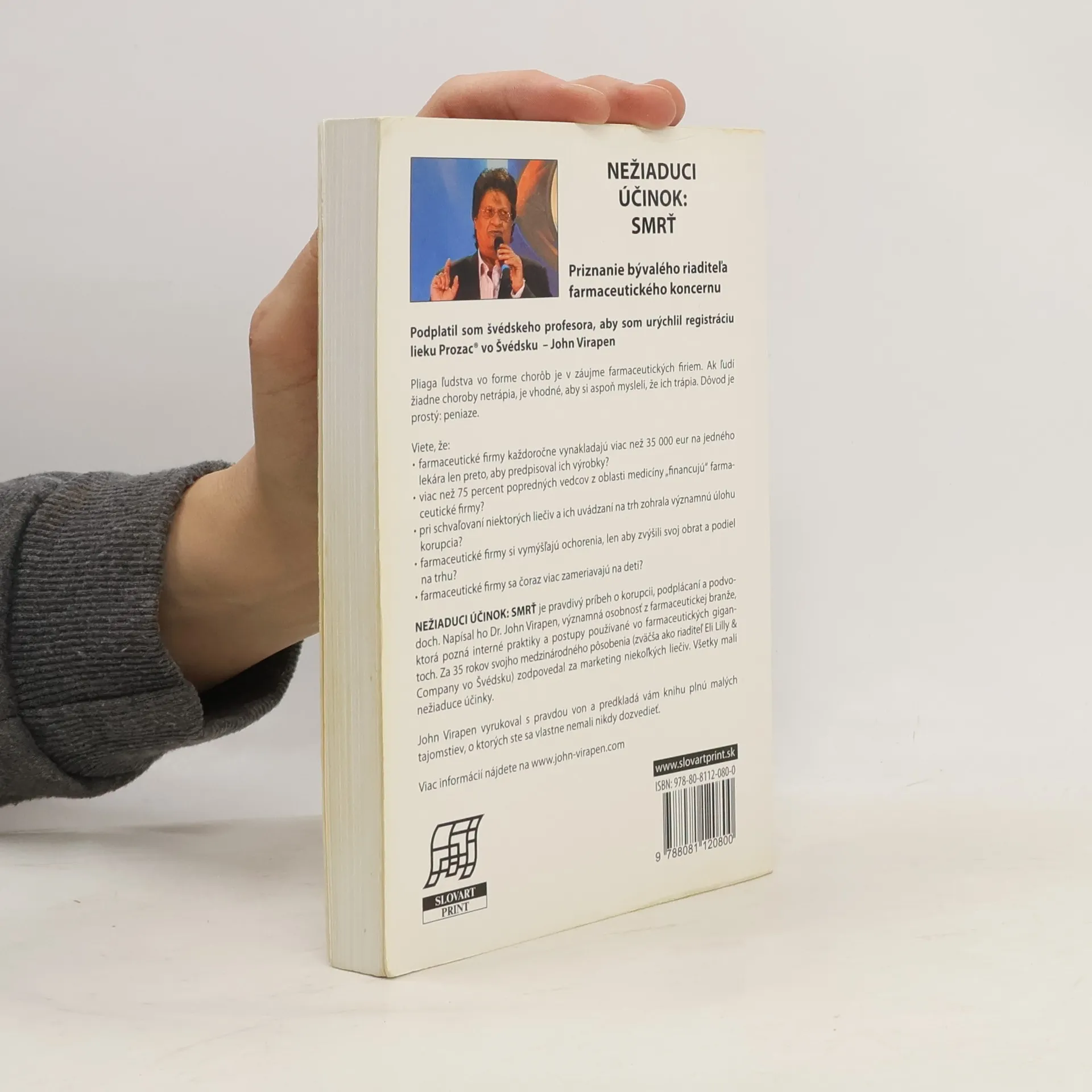 Táto kniha rozpráva pravdivý príbeh o korupcii, podplácaní a podvodoch. Napísal ju bývalý riaditeľ farmaceutického koncernu Dr. John Virapen, ktorý pozná interné praktiky a postupy používané vo farmaceutických gigantoch.