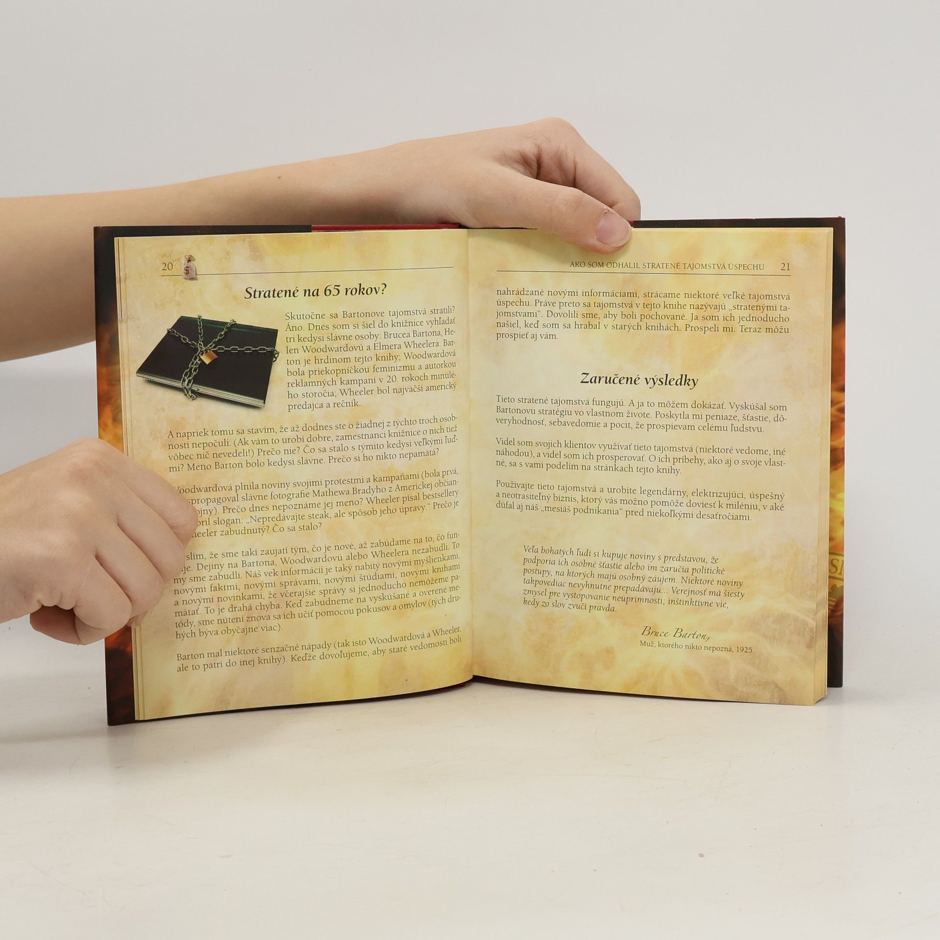 Vášnivá kniha plná nadčasových, inšpiratívnych, vnímavých, silných a úprimných myšlienok, ktoré kdesi vyslovil dejinami zabudnutý génius Bruce Barton. V tridsiatych rokoch minulého storočia mu hovorili mesiáš biznisu, pretože Amerike pomohol vyviaznuť z Veľkej hospodárskej krízy. Joe Vitale rozvíja jeho dielo tak, aby ho bolo možné využiť pri prekonávaní súčasnej ekonomickej recesii. Každá zo šestnástich kapitol je veľkým ponaučením, tentokrát o živote v konkurencii a úspechu v podnikaní.