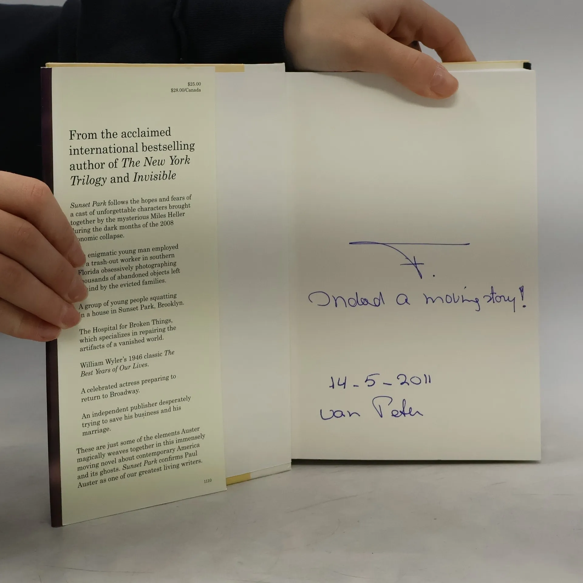 Luminous, passionate, expansive, an emotional tour de force, Sunset Park follows the hopes and fears of a cast of unforgettable characters brought together by the mysterious Miles Heller during the dark months of the 2008 economic collapse. An enigmatic young man employed as a trash-out worker in southern Florida obsessively photographing thousands of abandoned objects left behind by the evicted families. A group of young people squatting in an apartment in Sunset Park, Brooklyn. The Hospital for Broken Things, which specializes in repairing the artifacts of a vanished world. William Wyler's 1946 classic The Best Years of Our Lives. A celebrated actress preparing to return to Broadway. An independent publisher desperately trying to save his business and his marriage. These are just some of the elements Auster magically weaves together in this immensely moving novel about contemporary America and its ghosts. Sunset Park is a surprising departure that confirms Paul Auster as one of our greatest living writers.
