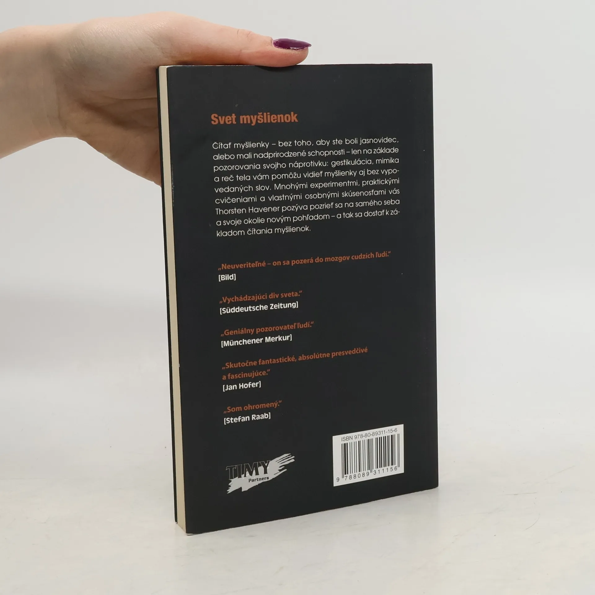 Viem, čo si myslíš Tajomstvo čítania myšlienok V tejto knihe vám Thorsten Havener prezradí niektoré zo svojich techník a nechá vás nahliadnuť do svojho umenia. S trochou tréningu dokážete aj vy vidieť veci, ktoré ostávajú iným skryté a začnete vnímať svoje okolie inak. Druhé vydanie.