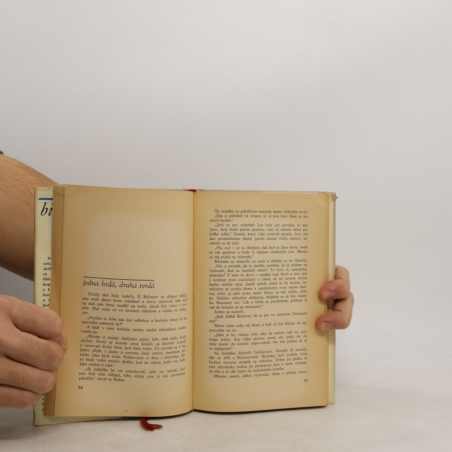 Úspešne sfilmovaná kniha z myjavského prostredia, v ktorej vystupuje patriachálna vladárka na majetku, kde rozkazuje svojim trom dospelým synom a nechce chudobnú nevestu, čo sa zabudla s najmladším. Teší sa z bohatej mlynárovej Zuzky, ktorú si berie jej druhý syn. Všetko sa však zamotá viac, akosi Bičianka predstavovala...