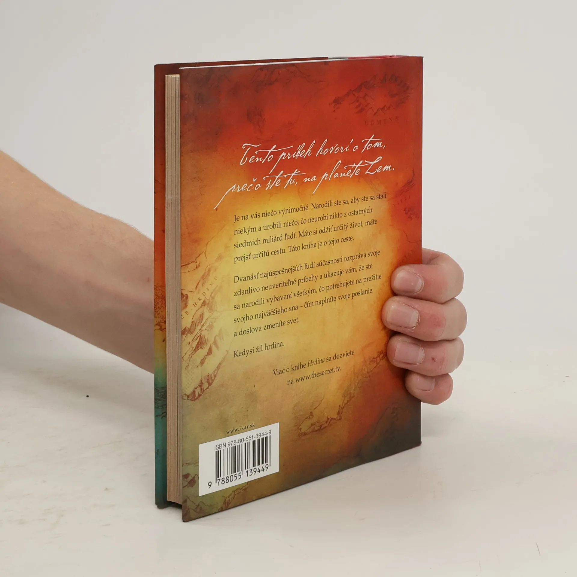 HRDINA, najnovší a doteraz najvýznamnejší projekt Rhondy Byrneovej, tvorkyne svetovo najpredávanejšieho filmu a knihy The Secret, Tajomstvo, ktorý vám zmení svet. OD NULY K HRDINOVI... MAPA VEDÚCA K BOHATÉMU ŽIVOTU Aké je vaše pravé poslanie a prečo ho ešte nerealizujete? Predstavte si, že existuje mapa, ktorá vám krok za krokom ukáže, ako sa dostať z miesta, kde sa teraz nachádzate, k svojmu pravému poslaniu a k životu, ktorý máte prežiť – tomu najúžasnejšiemu, najbohatšiemu, najuspokojujúcejšiemu a najoslňujúcejšiemu životu, o akom ste kedy snívali. HRDINA je tá mapa pre váš život. Sledovaním cesty dvanástich ľudí, v súčasnosti najúspešnejších na planéte, sa naučíte, ako využiť svoje vnútorné sily na prekonanie prekážok a na splnenie aj tých najneuveriteľnejších snov. Budú vás inšpirovať, ako nájsť svoje vlastné poslanie a aké kroky podniknúť, aby sa váš vysnívaný život stal každodennou realitou. Buďte hrdinom, ktorým máte byť.