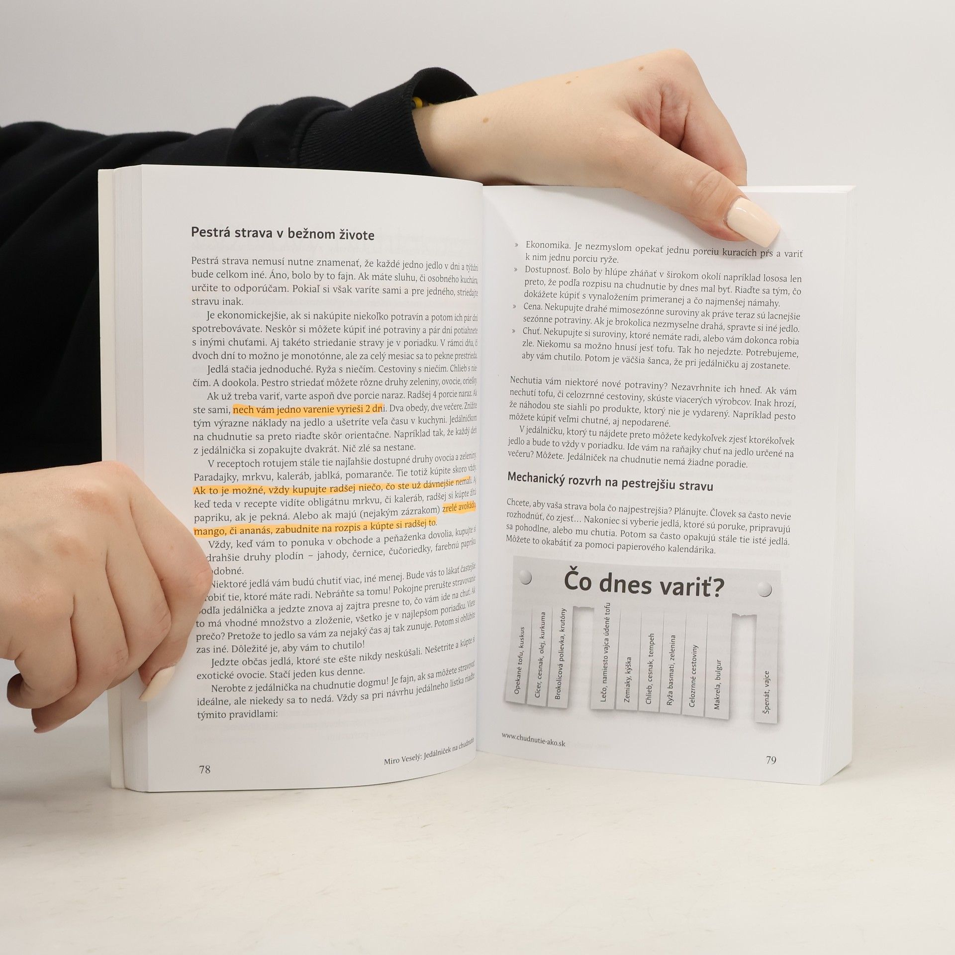 Prečo sme tuční? Akými spôsobmi sa dá schudnúť? Ako sa dá vylepšiť kondícia? Čo variť, aby to bolo zdravé a pritom aby človek schudol? Aj o tom je kniha Jedálniček na chudnutie. Plus príbeh Mira Veselého ako schudol 35 kíl. Je to tučná kniha plná motivácie a informácií. Zloženie: 420 gramov nestráviteľnej celulózy, ktorú môžete zhltnúť len očami. Využiteľná energia: 0 kcal, ale nakopne vás (dúfam).