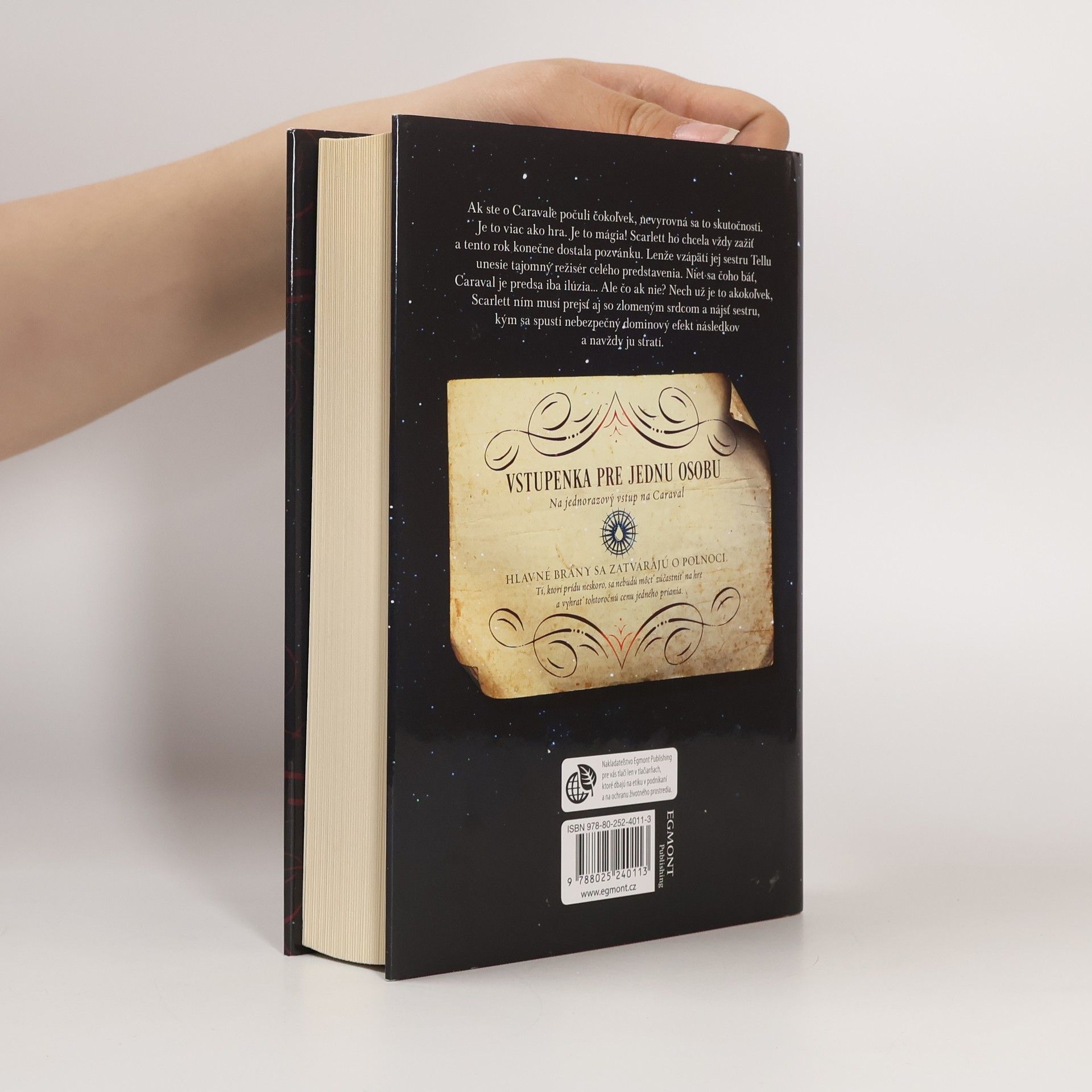Než vstúpite do sveta Caravalu, majte na pamäti, že je to len hra. Či už ste o Caravalu počuli čokoľvek, určite sa to nevyrovná realite. Je to viac než hra! Je to mágia. Scarlett vždy túžila Caraval zažiť a tento rok dostala pozvánku. Lenže vzápätí unesie jej sestru Tello tajomný režisér celého predstavenia. Niet sa čoho báť, Caraval je predsa len zdanie. Ale čo ak nie? Nech už je to akokoľvek, Caravalem musí Scarlett prejsť aj so zlomeným srdcom a sestru rýchlo nájsť, než sa spustí nebezpečný dominový efekt následkov a navždy ju stratí.