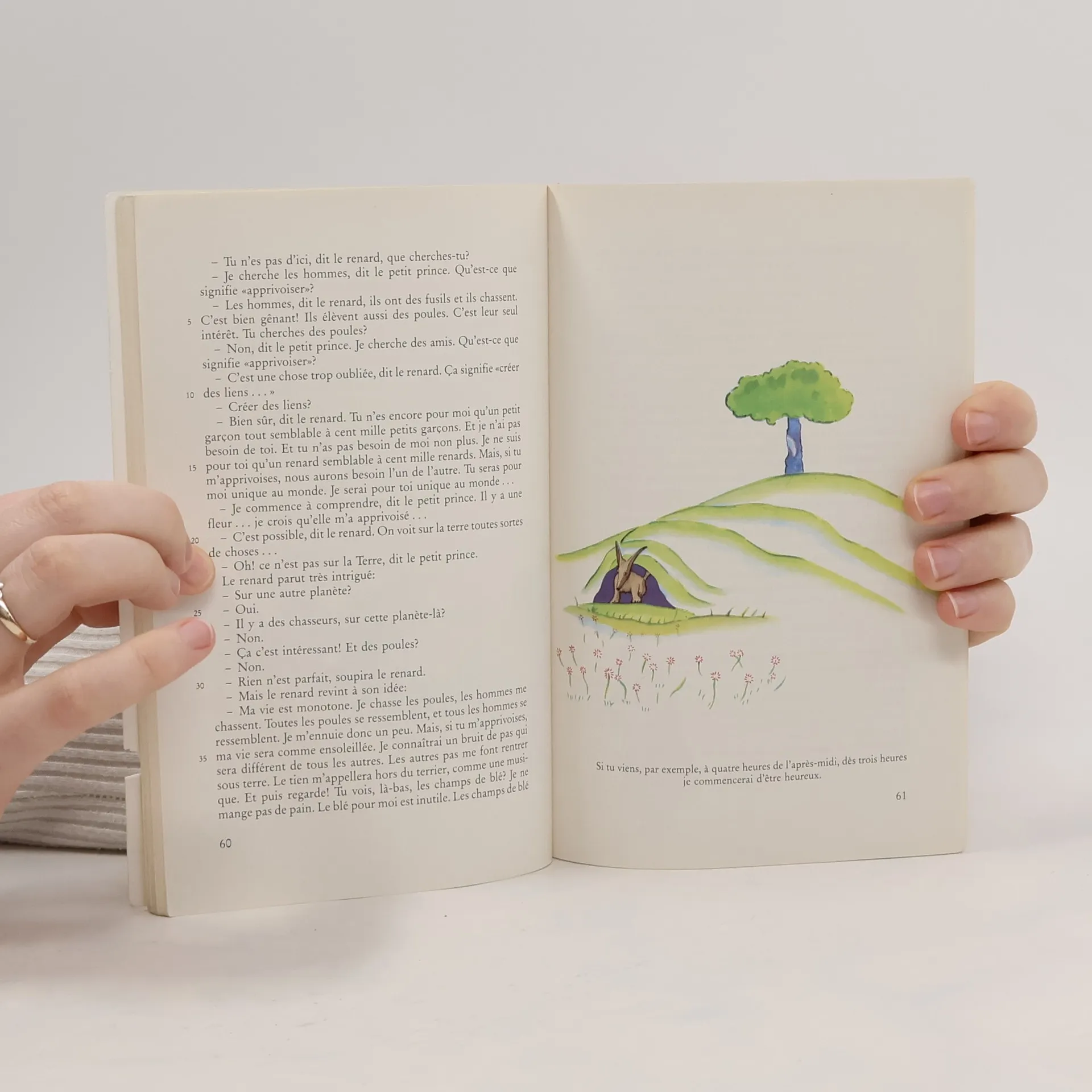 «Le premier soir, je me suis donc endormi sur le sable à mille milles de toute terre habitée. J'étais bien plus isolé qu'un naufragé sur un radeau au milieu de l'océan. Alors, vous imaginez ma surprise, au lever du jour, quand une drôle de petite voix m'a réveillé. Elle disait : “S'il vous plaît... dessine-moi un mouton!” J'ai bien regardé. Et j'ai vu ce petit bonhomme tout à fait extraordinaire qui me considérait gravement...» Nouvelle impression réalisée à partir de l'édition originale, avec des aquarelles de l'auteur.