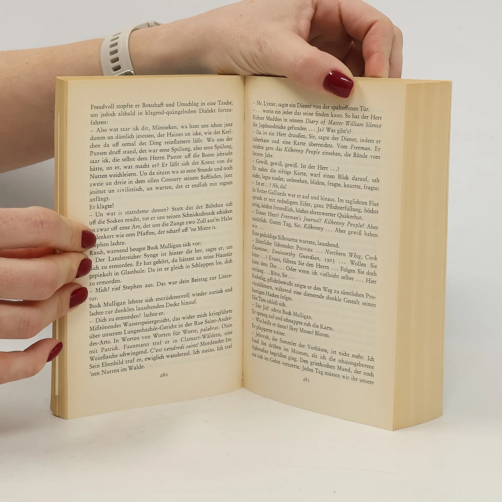 James Joyce wurde am 2. Februar 1882 in Dublin geboren und wuchs in schwierigen Verhältnissen auf. Er studierte moderne Sprachen am University College Dublin. 1902 zog er nach Paris, um Medizin zu studieren, wandte sich jedoch dem Schreiben zu und lebte einen ausschweifenden Lebensstil. 1903 kehrte er nach Dublin zurück, fand jedoch keinen Anschluss. 1904 siedelte er mit seiner Geliebten und späteren Frau Nora Barnacle nach Triest über. Dort schrieb er Kurzgeschichten und überarbeitete seinen ersten Roman, der als A Portrait of the Artist as a Young Man veröffentlicht wurde. 1914 erschien seine erste Kurzgeschichtensammlung Dubliners. Nach Ausbruch des Ersten Weltkrieges zog er mit seiner Familie nach Zürich, wo sein bekanntestes Werk, Ulysses, entstand. Der Roman wurde 1918-1920 in Auszügen in der amerikanischen Zeitschrift »The Little Review« abgedruckt und 1921 wegen obszöner Inhalte verboten. 1922 erschien Ulysses in zensierter Form in Paris. 1920 zog Joyce auf Einladung von Ezra Pound nach Paris, wo er bis zur Besetzung Frankreichs im Zweiten Weltkrieg lebte. Sein letzter Roman, Finnegan’s Wake, wurde 1939 veröffentlicht. Joyce starb am 13. Januar 1941 in Zürich. Hans Wollschläger, geboren 1935 in Minden, war Schriftsteller und Übersetzer, der Ulysses ins Deutsche übertrug. Sein Roman Herzgewächse oder der Fall Adams erschien 1982. Wollschläger starb 2007 in Bamberg.