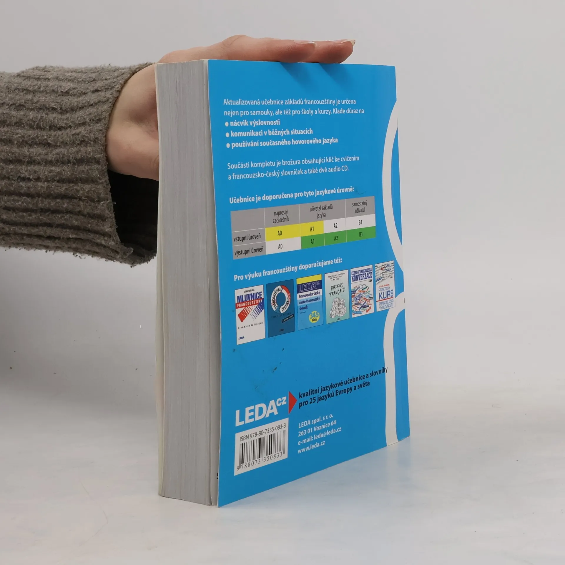 Aktualizovaná a doplněná verze oblíbené učebnice určené samoukům, účastníkům jazykových kurzů, studentům i „věčným“ začátečníkům, kteří si potřebují osvěžit své znalosti. Učebnice má 35 lekcí a každá obsahuje úvodní text, slovíčka, frazeologismy i francouzské reálie spjaté s každodenním životem. Následuje mluvnická část, na niž navazují cvičení. Výslovnost a pravopis jsou probírány v prvních 15 lekcích, každý fonetický jev je důkladně procvičen. Součástí učebnice je jednak brožura s klíčem ke cvičením a francouzsko-českým slovníčkem, jednak dvě audio CD, na nichž rodilí mluvčí nahráli úvodní texty, dialogy, všechna fonetická a vybraná mluvnická cvičení. Pokud uživatel poctivě prostuduje celou učebnici, měly by jeho jazykové znalosti odpovídat nejlepšímu maturitnímu průměru. 1. vydání.