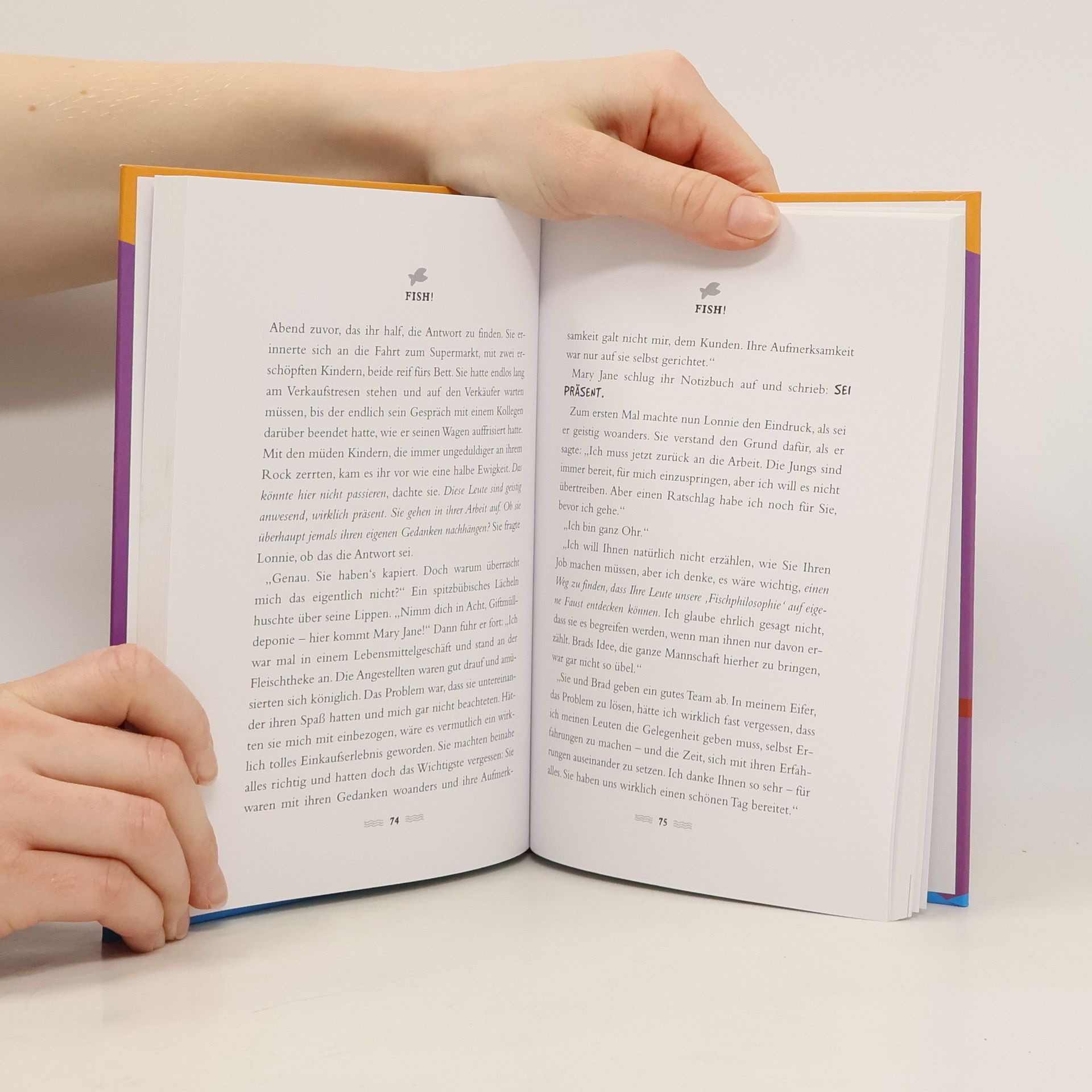Menschen, die jeden Tag aufs Neue dynamisch, energiegeladen und mit Freude ihre Arbeit anpacken ... Ein Arbeitsumfeld, in dem sich Mitarbeiter völlig mit ihren Aufgaben identifizieren und wo Kundenwünsche jederzeit gutgelaunt erfüllt werden ... Unvorstellbar für Mary Jane Ramirez, Managerin einer Firma in Seattle, deren Auftrag darin besteht, eine lustlose, lahme Abteilung endlich zu einem effektiven Team umzuwandeln. Zufällig wird sie in ihrer Mittagspause Zeugin der mitreißenden Atmosphäre auf dem Pike Place Fischmarkt, erlebt den Spaß, den die Fischverkäufer dort an ihrer Arbeit haben und wie sich diese positive Einstellung auf die Kunden überträgt. Spaß am Job ist also doch möglich! FISH! ist ein ungewöhnliches Motivationsbuch, dasveranschaulicht, wie jeder Gefallen an seiner Arbeit finden und dadurch wesentlich mehr leisten kann. Eine wahre Geschichte!