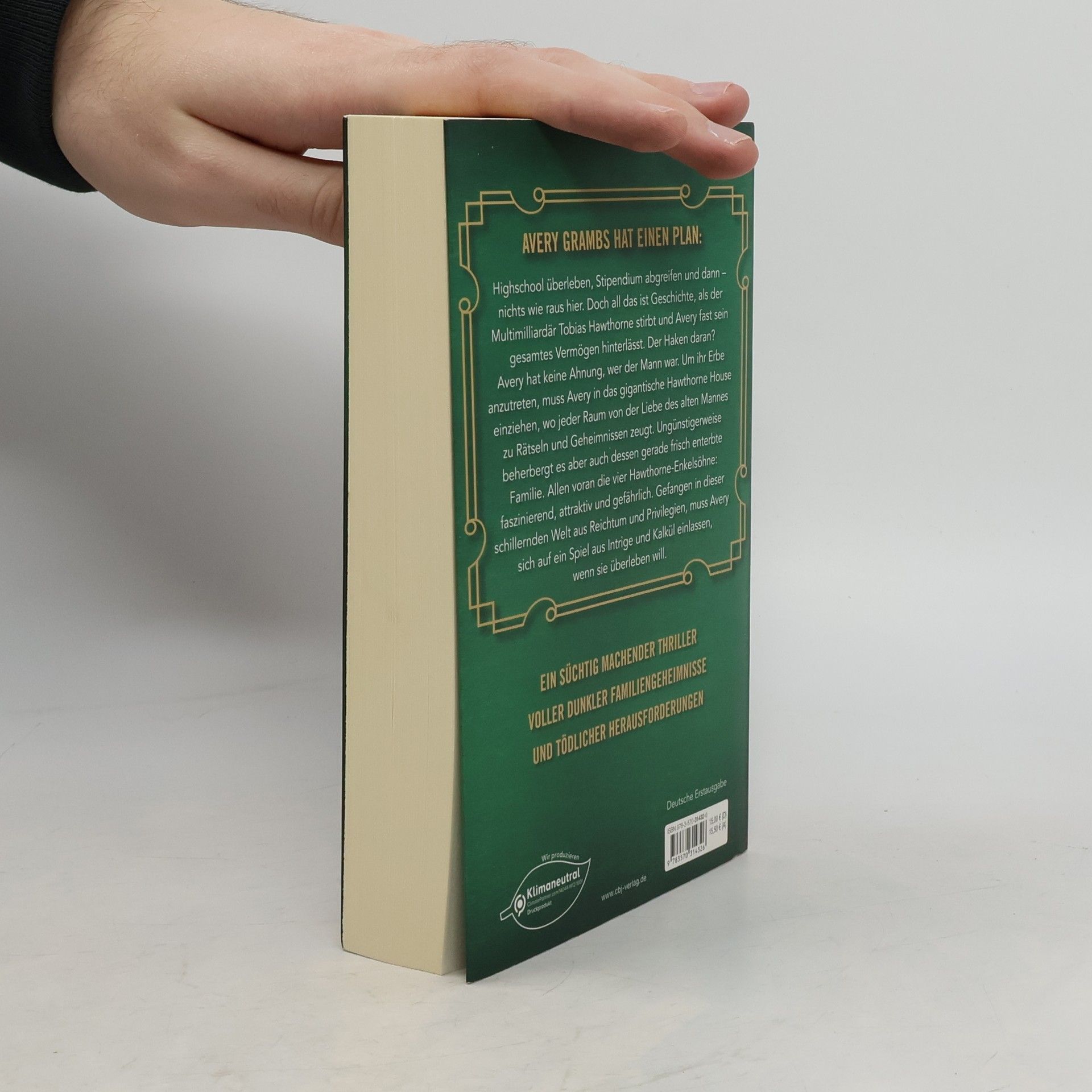 50 Milliarden Dollar – Eine unbekannte Erbin – Vier mörderische Nachkommen. Für alle ab 14 Jahren! Avery Grambs hat einen Plan: Highschool überleben, Stipendium abgreifen und dann – nichts wie raus hier. Doch all das ist Geschichte, als der Multimilliardär Tobias Hawthorne stirbt und Avery fast sein gesamtes Vermögen hinterlässt. Der Haken daran? Avery hat keine Ahnung, wer der Mann war. Um ihr Erbe anzutreten, muss Avery in das gigantische Hawthorne House einziehen, wo jeder Raum von der Liebe des alten Mannes zu Rätseln und Geheimnissen zeugt. Ungünstigerweise beherbergt es aber auch dessen gerade frisch enterbte Familie. Allen voran die vier Hawthorne-Enkelsöhne: faszinierend, attraktiv und gefährlich. Gefangen in dieser schillernden Welt aus Reichtum und Privilegien, muss Avery sich auf ein Spiel aus Intrige und Kalkül einlassen, wenn sie überleben will. Ein süchtig machender Thriller voller dunkler Familiengeheimnisse und tödlicher Herausforderungen. Die Inheritance-Reihe: The Inheritance Games (Band 1) The Inheritance Games - Das Spiel geht weiter (Band 2) The Inheritance Games - Der letzte Schachzug (Band 3)
