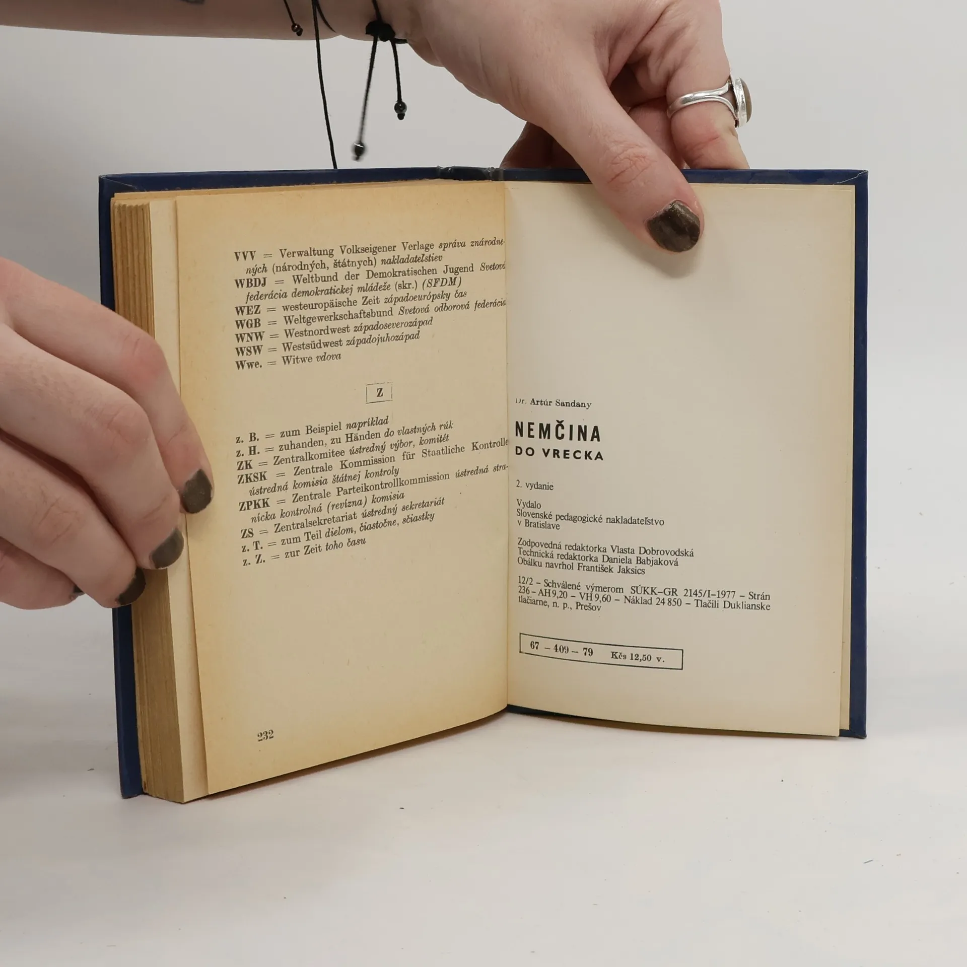 Nemecko-slovenská príručka pre turistov je rozdelená na viaceré kapitoly podľa námetov a tematických okruhov. Druhé vydanie. 67-409-79