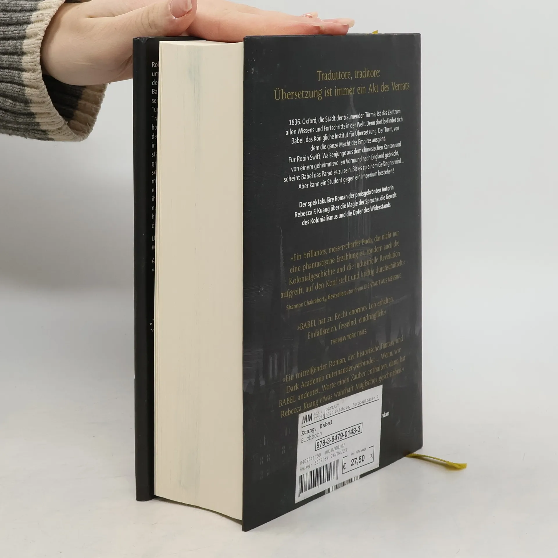 1828: Robin Swift, ein Waisenkind aus China, wird von Professor Lovell nach London gebracht, nachdem ein Cholera-Ausbruch seine Heimat verwüstet hat. Dort lernt er jahrelang Latein, Altgriechisch und Chinesisch, um am Königlichen Institut für Übersetzung in Oxford, auch bekannt als Babel, studieren zu können. Oxford ist das Zentrum des Wissens und verkörpert die Macht des britischen Empires. Neben der Übersetzung wird hier auch Magie gelehrt; das Silberwerk ermöglicht es, verlorene Bedeutungen durch verzauberte Silberbarren zu manifestieren, was dem Empire enormen Einfluss verschafft. Für Robin ist Oxford ein Traumort, der dem Streben nach Wissen gewidmet ist. Doch er erkennt, dass Wissen auch Macht bedeutet, und als chinesischer Junge wird ihm klar, dass es einen Verrat an seinem Heimatland bedeutet, Babel zu dienen. Während seines Studiums steht Robin zwischen Babel und dem geheimen Hermes-Bund, der die imperialen Ambitionen stoppen will. Als Großbritannien einen ungerechten Krieg gegen China um Silber und Opium führt, muss Robin eine Entscheidung treffen. Kann ein Student gegen ein Imperium bestehen? Ein fesselnder Roman über die Magie der Sprache, den Kolonialismus und den Widerstand.
