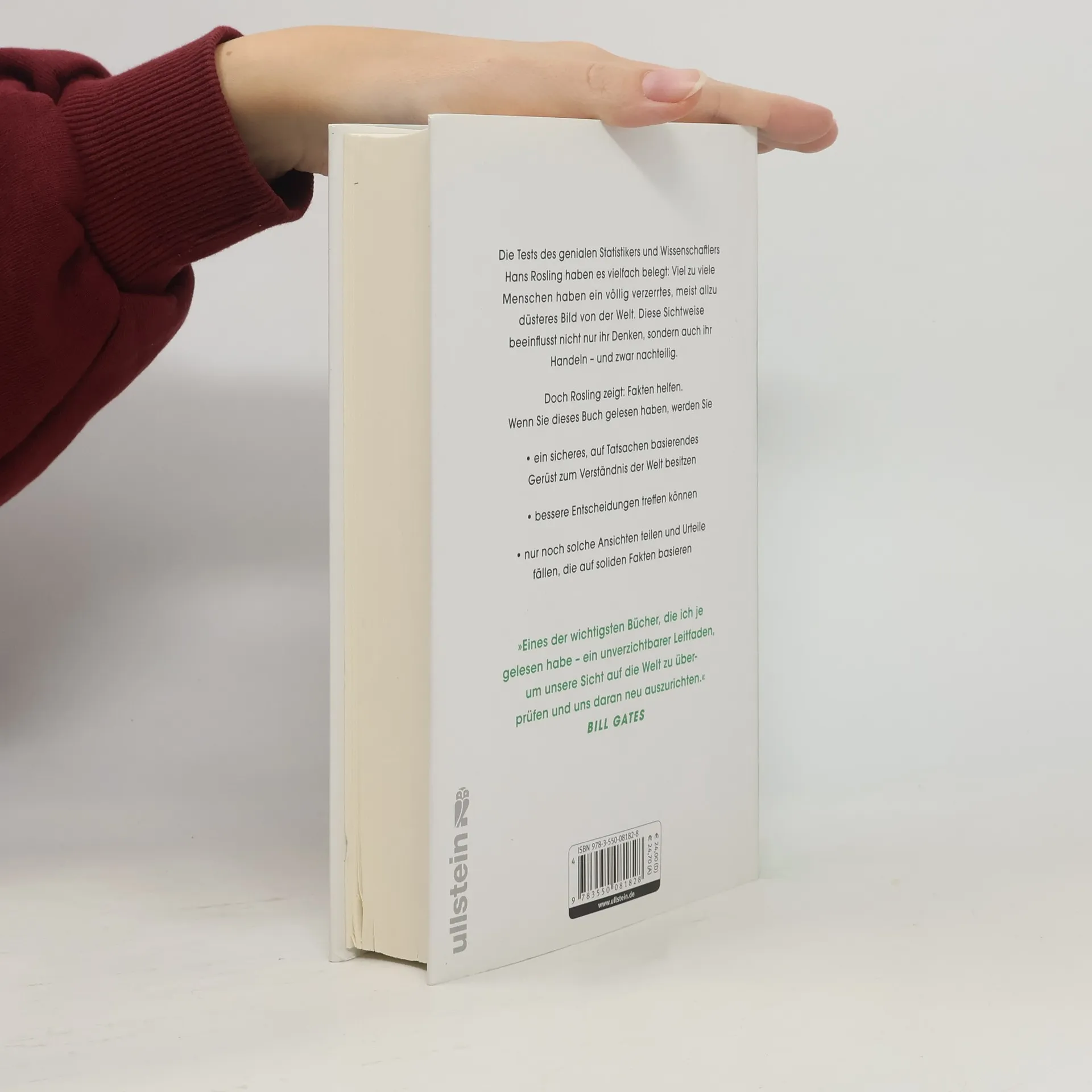 Es wird alles immer schlimmer, eine schreckliche Nachricht jagt die andere: Die Reichen werden reicher, die Armen ärmer. Es gibt immer mehr Kriege, Gewaltverbrechen, Naturkatastrophen. Viele Menschen tragen solche beängstigenden Bilder im Kopf. Doch sie liegen damit grundfalsch. Unser Gehirn verführt uns zu einer dramatisierenden Weltsicht, die mitnichten der Realität entspricht, wie der geniale Statistiker und Wissenschaftler Hans Rosling erklärt. Wer das Buch gelesen hat, wird• ein sicheres, auf Fakten basierendes Gerüst besitzen, um die Welt so zu sehen, wie sie wirklich ist• die zehn gängigsten Arten von aufgebauschten Geschichten erkennen • bessere Entscheidungen treffen können• wahre Factfulness erreichen – jene offene, neugierige und entspannte Geisteshaltung, in der Sie nur noch Ansichten teilen und Urteile fällen, die auf soliden Fakten basieren